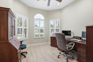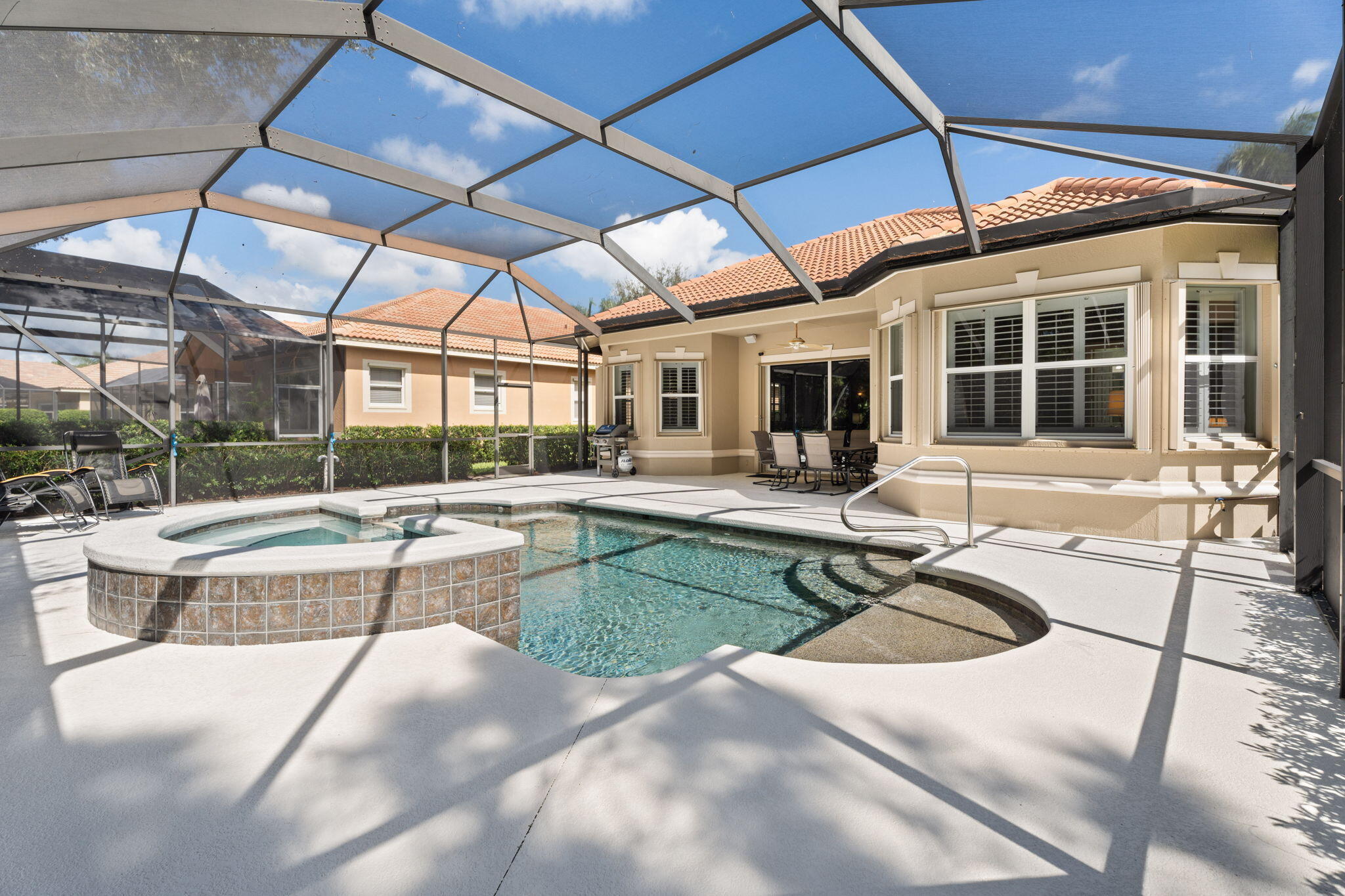 Welcome to Maidstone at PGA Village, where timeless design meets relaxed Florida living. This 2BR + den, 2.5 bath retreat offers a heated pool and spa surrounded by vibrant tropical landscaping. Light pours through plantation shutters onto wood-look tile floors that flow through open, inviting spaces designed for comfort and connection. The kitchen and family room open to the screened lanai for effortless indoor-outdoor living. Dues include lawn care, cable, internet, + access to exclusive amenities, fitness center, lap pool, tennis, & pickleball. Optional memberships available at The Legacy and PGA Golf Club's championship courses. Experience the ultimate blend of serenity, sophistication, and resort-style living, where every day feels like a private getaway in the heart of PGA Village.