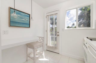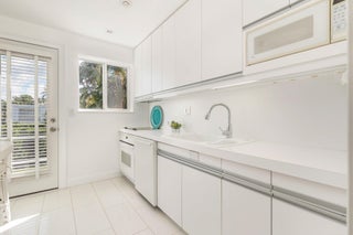 Wonderful opportunity on the Island in sought after charming 8 unit boutique building - top (2nd) floor 2BD/2BA, 9' ceilings, 20' private balcony, awash in light on 3 sides with tree top views on quiet block. One block to beach, Lake Trail, close to restaurants, shopping, grocery. Hurricane windows and doors throughout. Washer/dryer in unit, pet friendly. Large community terrace with grille, extra storage.