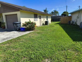 With no HOA restrictions, this one story home features 3 bedrooms,2 baths and 1174 square feet of thoughtfully designed living space. There is an additional 600 square feet of living space that includes a screen in porch and 1 car garage. An eat in kitchen complete with a convenient pass-through to the living areas. Each bedroom has its own closet and the master bath has recently been upgraded. Outdoors enjoy a spacious backyard which is perfect for relaxation or entertaining. The property includes a one car attached garage which also houses a recently purchased washer and dryer. The central A/C is approximately 3 years old. Close to parks, shopping and Palm Beach State College.