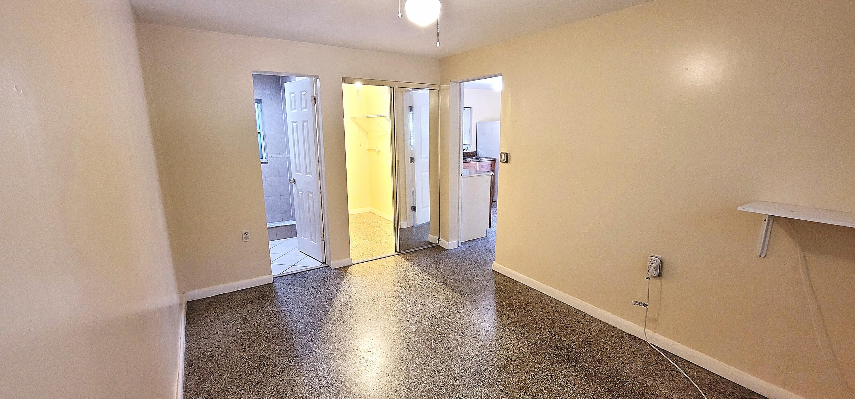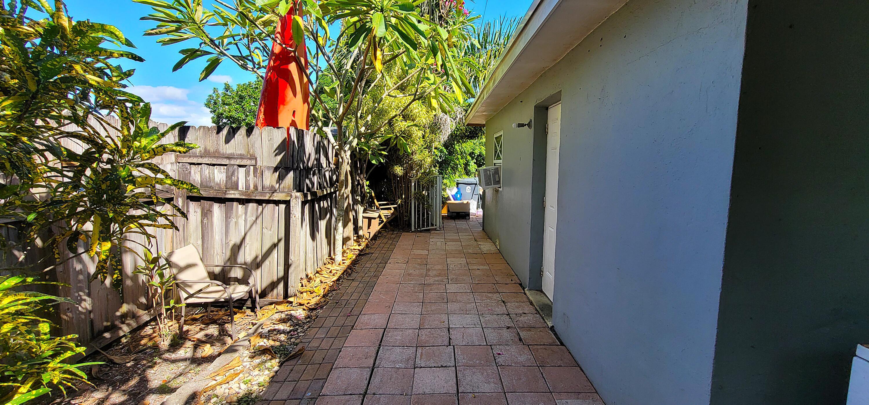 Discover this charming 1BR/1BA mid-century modern apartment tucked away in a peaceful duplex in suburban Lake Worth, just South of 10th Ave North between Military Trail and Congress Ave. This cozy home offers exceptional privacy with your own side and back area -- perfect for relaxing outdoors or enjoying a quiet evening. Inside, you'll find beautiful terrazzo floors throughout and two efficient window/wall A/C units to keep you cool year-round. The unit includes two dedicated parking spaces, and water/sewer/septic is included in the rent -- an excellent value! Ideal for 1-2 responsible residents, this home requires a minimum 650 credit score, verifiable income, and background/credit check is required. Enjoy the timeless mid-century charm, tropical surroundings, and the convenient location!
