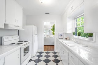 This 1949 bungalow brings vintage Palm Beach charm to life in one of West Palm's most sought-after historic neighborhoods. Original hardwood floors, sunlit living + dining spaces, preserved Art Deco bathroom, and two spacious bedrooms with walk-in closets -- a rare find in Old Northwood.Enjoy morning coffee in the vintage sunroom with its original broken-tile flooring, or unwind in the fully fenced backyard shaded by mature fruit trees. Off-street parking and a covered carport add everyday convenience.Walk to Northwood Village's shops + restaurants, bike to Palm Beach Island or Downtown WPB.Historic soul. Timeless style. Perfect location.