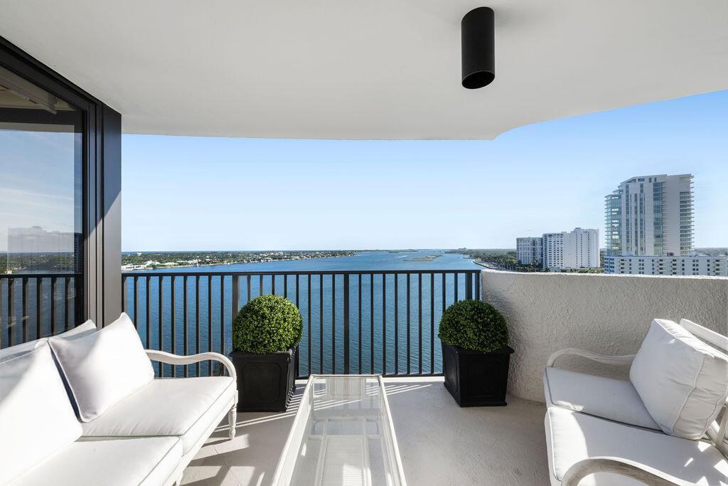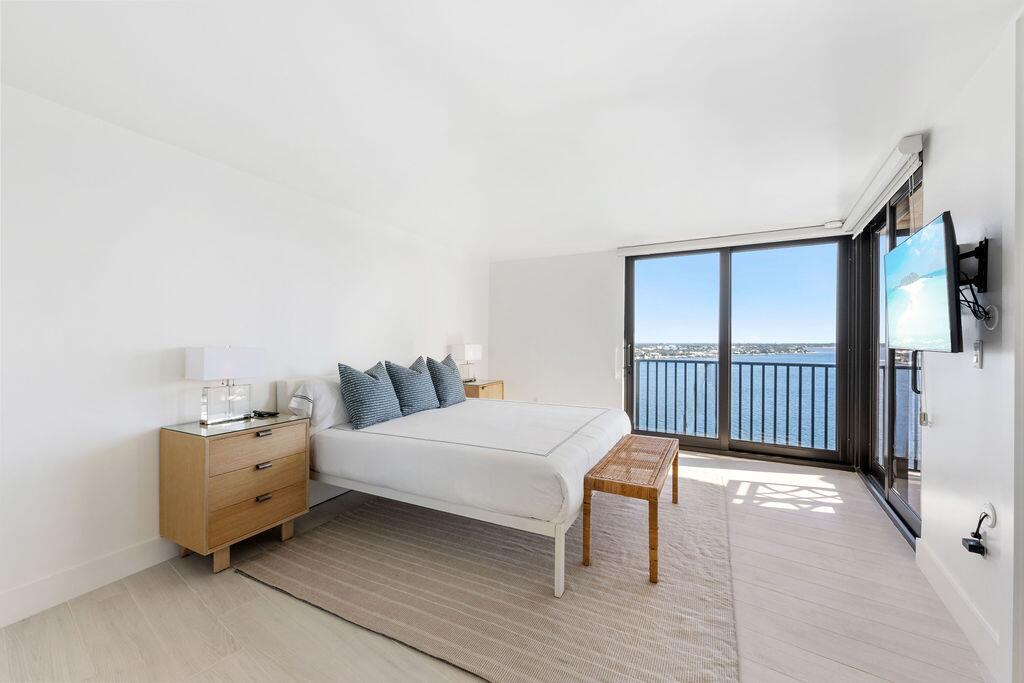 Located directly on the Intracoastal Waterway, this newly renovated two bedroom, two bathroom condominium offers 1,587+/- total square with sweeping views of the Intracoastal, Palm Beach Island, and beyond.The spacious living and dining area opens to a private balcony through floor-to-ceiling glass doors, creating a seamless flow between indoor and outdoor living. The modern kitchen, just off the dining area, combines clean design with everyday functionality.The primary suite includes floor-to-ceiling glass doors opening to the balcony and a beautifully updated en-suite bath. The guest bedroom also enjoys balcony access and a private en suite bath, ideal for family or guests.Additional features include an in-unit washer and dryer and one designated parking space.The TrianonCondominium has recently completed renovations to its lobby, hallways, and common areas. The building offers a club room, waterfront pool, a full time manager, and 24 hour doorman. Perfectly situated within walking distance to Palm Beach Island, Worth Avenue, the Lake Trail, and restaurants and shopping.