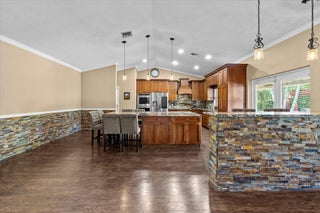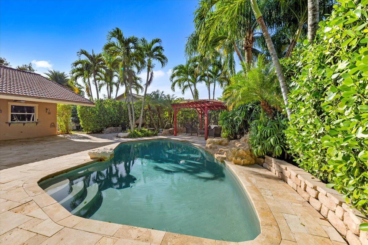 Welcome home to this beautiful 4-bed, 2.5-bath pool home offering over 2,000 sq ft of living space on a quiet, tree-lined street in Coral Springs' desirable Pine Ridge community. The open-concept layout features vaulted ceilings, a spacious family room with a stone accent wall and mood fireplace, and a chef's kitchen with granite counters, dual ovens, induction cooktop, wine fridge, and a large island for gathering. Bedrooms are conveniently arranged on one side, maximizing living space. Step outside to your private tropical retreat with a sparkling freeform pool, pergola, fire pit, and multiple lounge areas surrounded by lush landscaping. A 3-car garage provides ample storage. Lawn and pool care included, no HOA approval, and pets welcome!