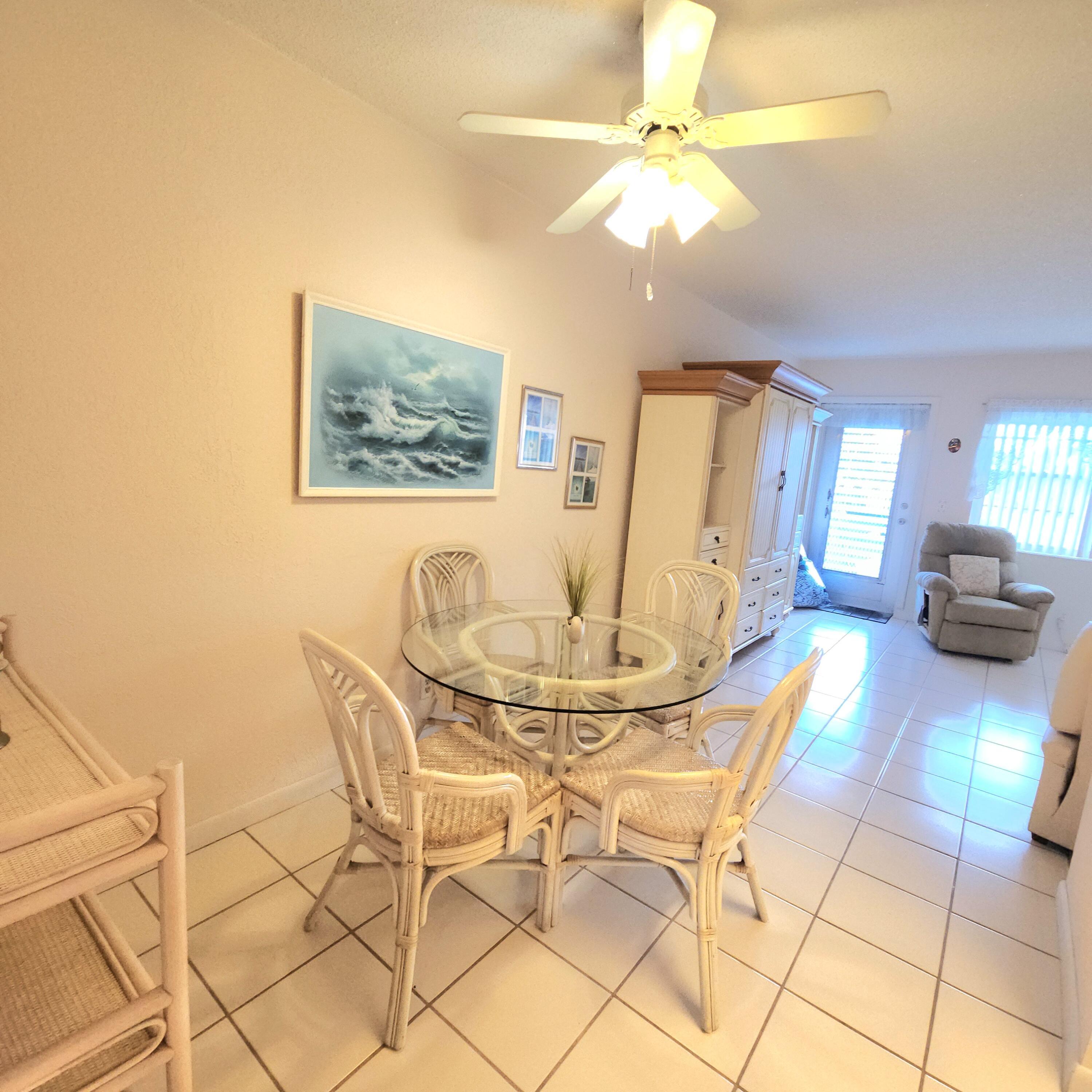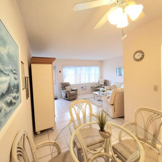 Great value for this sparkling professional cleaned condo. Walk in the front door to a bright and cheery living room then to your spacious dining area, off to the side is your spotless kitchen with plenty of prep space. The unit is equipped with utensils, plates and glasses. Just bring your personal belongings. The hallway has a walk in closet/pantry. Large comfy bedroom with walls of closets. Tile throughout, the stylish furniture as pictured is included in the price. Has a closed in Lanai to relax and a desk area for computer, crafts or whatever you like. This condo has no assessment, nicely maintained building which features pretty shutters on all the windows. There is a wonderful patio area with plenty of places to sit, umbrellas if you do not want the sun, and fancy light post for after hours. Century Village is a 55 and over community with plenty of activities for all to enjoy. Just to name a few: Clubhouse Amenities: -Shuffleboard -Bocci Ball -1200 seat theater for shows and movies. -Numerous clubs to join, to include trips in the US and Europe -Hasting's elite fitness center with complete, heated pool, the Lazy River resistance pool chair yoga, pool aerobics plus much more. -Sailing on the lakes of Century Village, don't know how to sail, no worries they have lessons. -Tennis/Pickleball -Indoor saltwater swimming pool, plus 8 swimming pools to choose from throughout the community -Duck Island with pier: picnics, barbeques, gatherings or just relaxation. -Community bus to transport you inside the village and outside the village for shopping, dining and much more. hair salon and barber and manicure pedicure. -Library -Dance/Party room -Pool table and ping pong room -And so much more Call me today for your private showing!