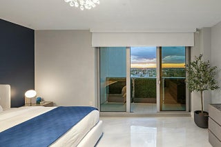 Contemporary waterfront residence on the Middle River with unobstructed sunset and skyline views. This 2BD/2BA open-concept residence features floor-to-ceiling glass, Italian cabinetry, Sub-Zero Refrigerator, Wolf Gas Cooktop, porcelain tile flooring throughout, day and evening electronic shades, and a spa-inspired primary bath with frameless glass and LED backlit mirrors. Enjoy a 55' balcony with summer kitchen and gas grill. Amenities include a riverside pool, impressive fitness center, spa with sauna and steam, sunset deck, resident lounge, guest suites, 24/7 front desk attendant, valet, 2 dog walking areas and strong building reserves. Includes 2 parking spaces and storage. Boat slips may be available. Prime location 1 mile to the beach, close to Las Olas and FLL Airport.