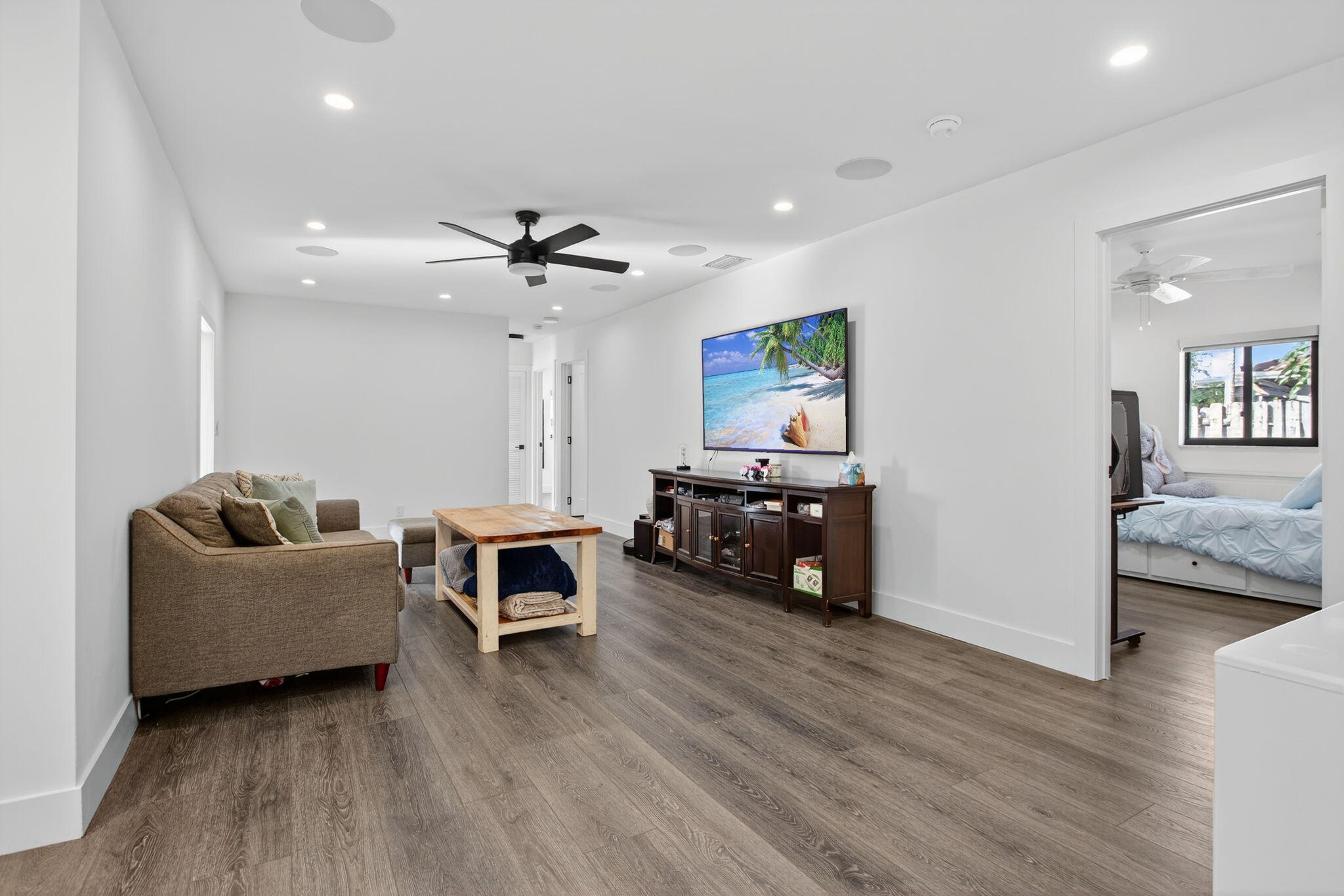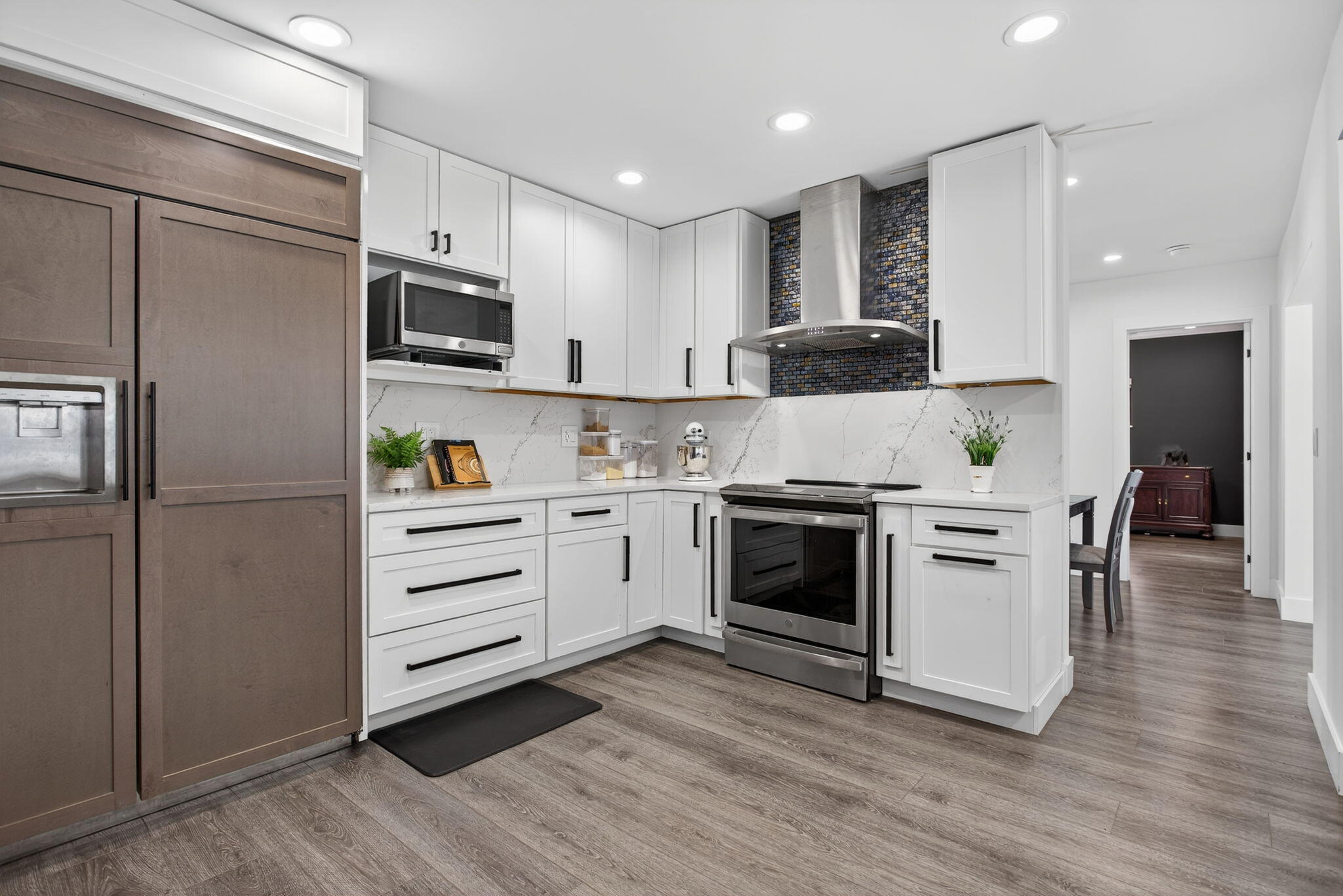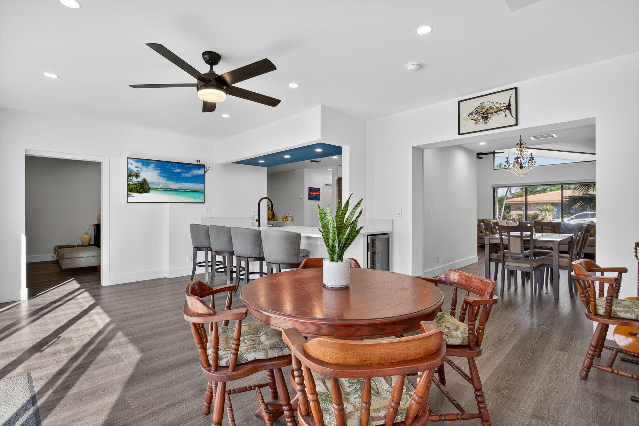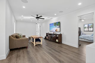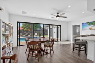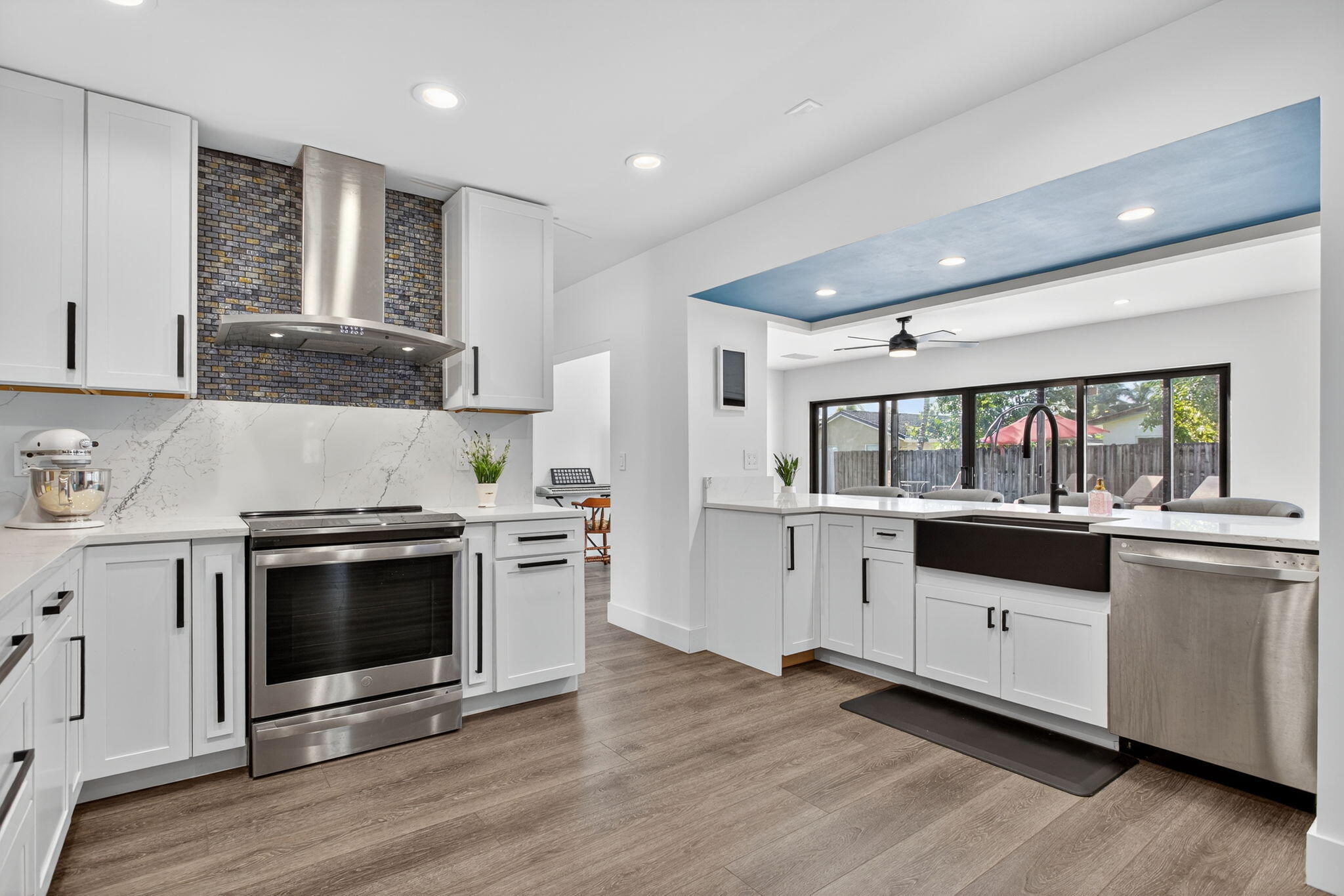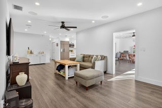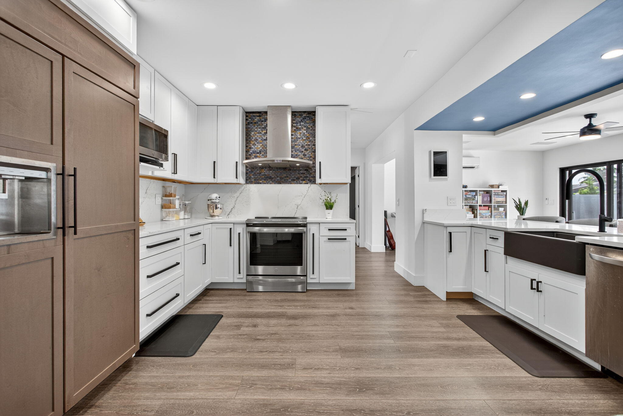 Remodeled and expanded with a modern flair, this house blends style and smarts! Vaulted ceiling allows light to fill the home, showcasing new luxury plank vinyl flooring throughout, solid wood doors & level 5 smooth walls. Large central kitchen features new cabinetry, quartz countertops, new SS appliances, counter seating. Huge primary suite has a sitting room, its own AC, 2 custom closets, shower w/dual-temp shower heads. Full storm protection w/impact glass windows, hurricane rated garage door. Control 4 smart system enables app-controlled TVs, speakers & whole-home audio,70+ dimmable recessed lights, mechanical window blinds. Fortified roof is energy-efficient with closed-cell foam insulation. Full upgrade of electrical service including panel. No HOA, all work permitted.