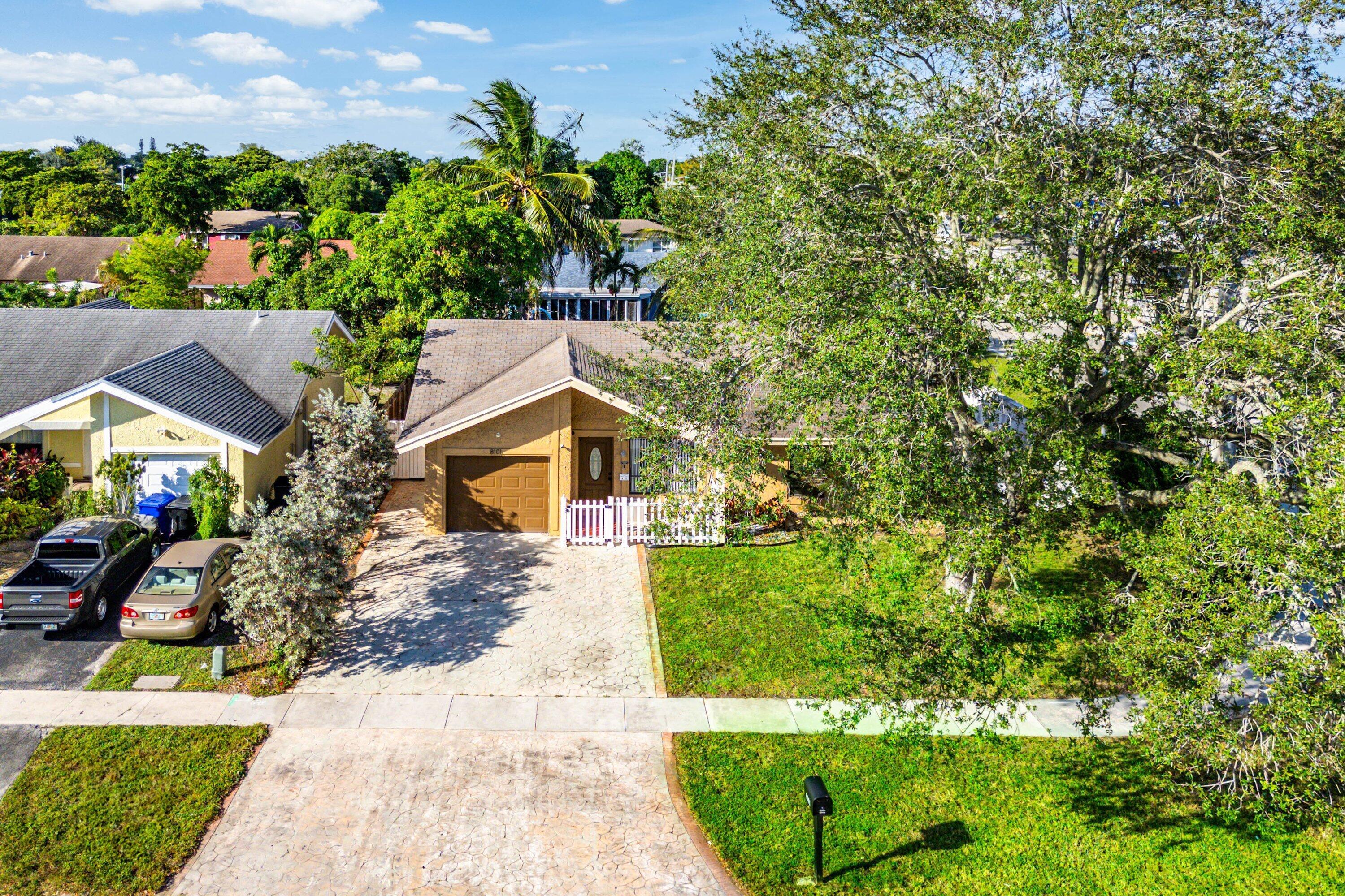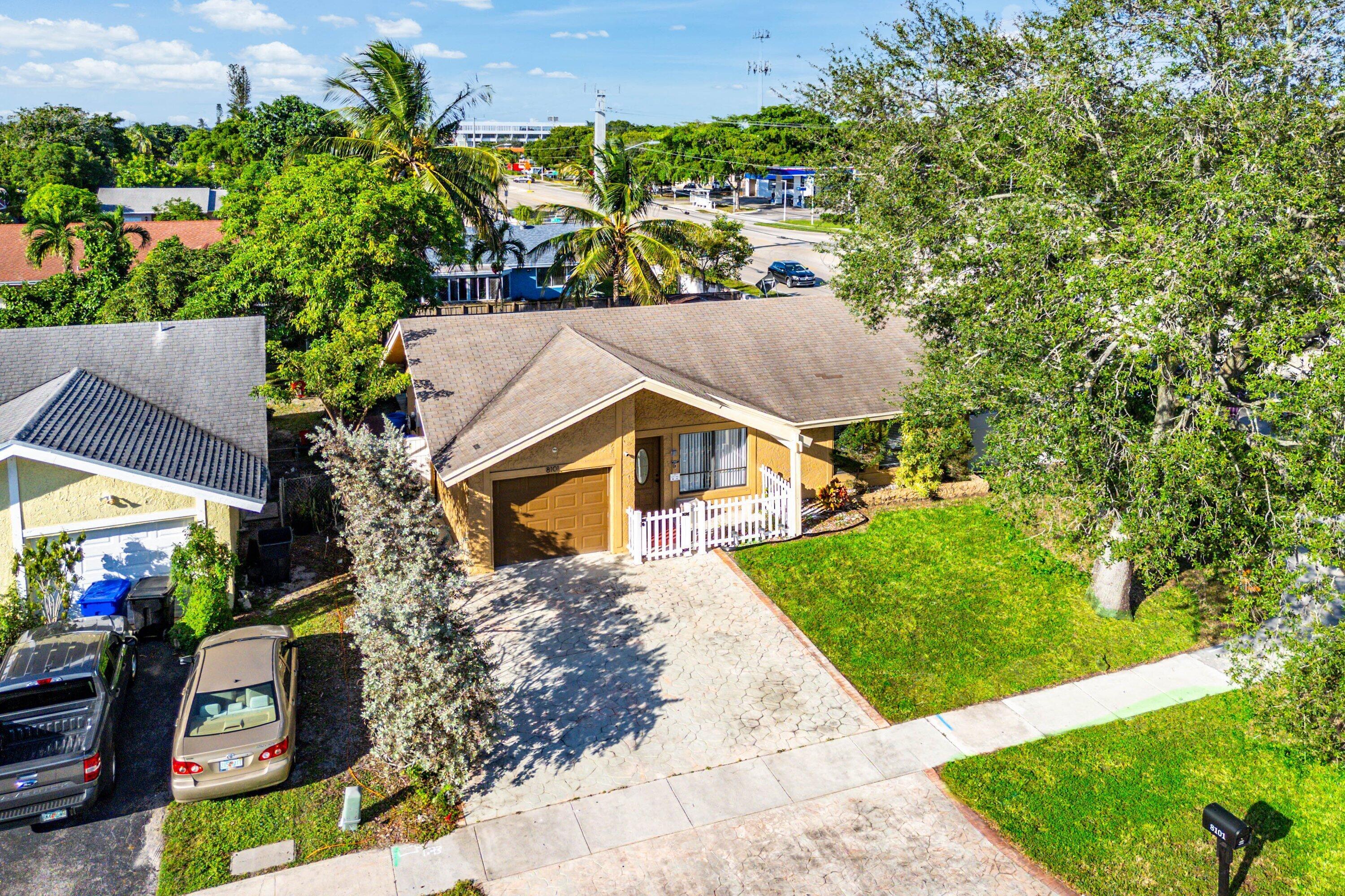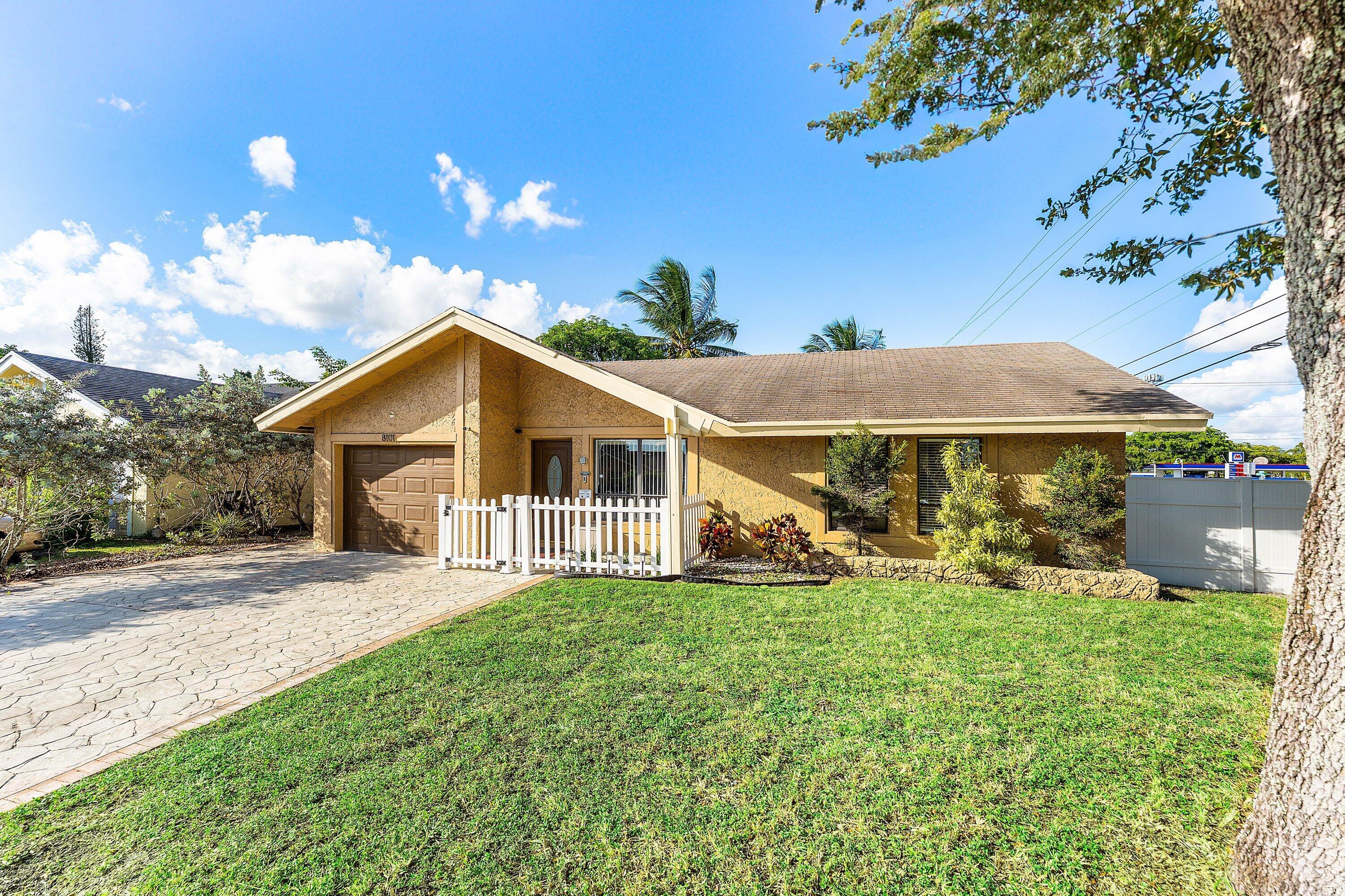 Purchase this fabulous 3 bedroom 2 bath home that has two majestic Coconut Trees, a sweet Mango tree fruit add flavor to your home. The corner lot is located close to shopping and has a magnificent Oak Tree out front that will make you proud to call this your Home.Ample parking and automatic Garage. Porcelain tiles throughout, granite countertops, stainless steel appliances. This home features an out door kitchen gas grill and stovetop cooking, refrigerator perfect for large parties or quiet entertaining within your fully fenced in yard. Perfect for families with a dog, Shed for extra storage. Outdoor slab for rv or boat. Come explore the perfect starter home today close to Sawgrass Mall, Turnpike, Pompano, Calvary Chapel Fort Lauderdale