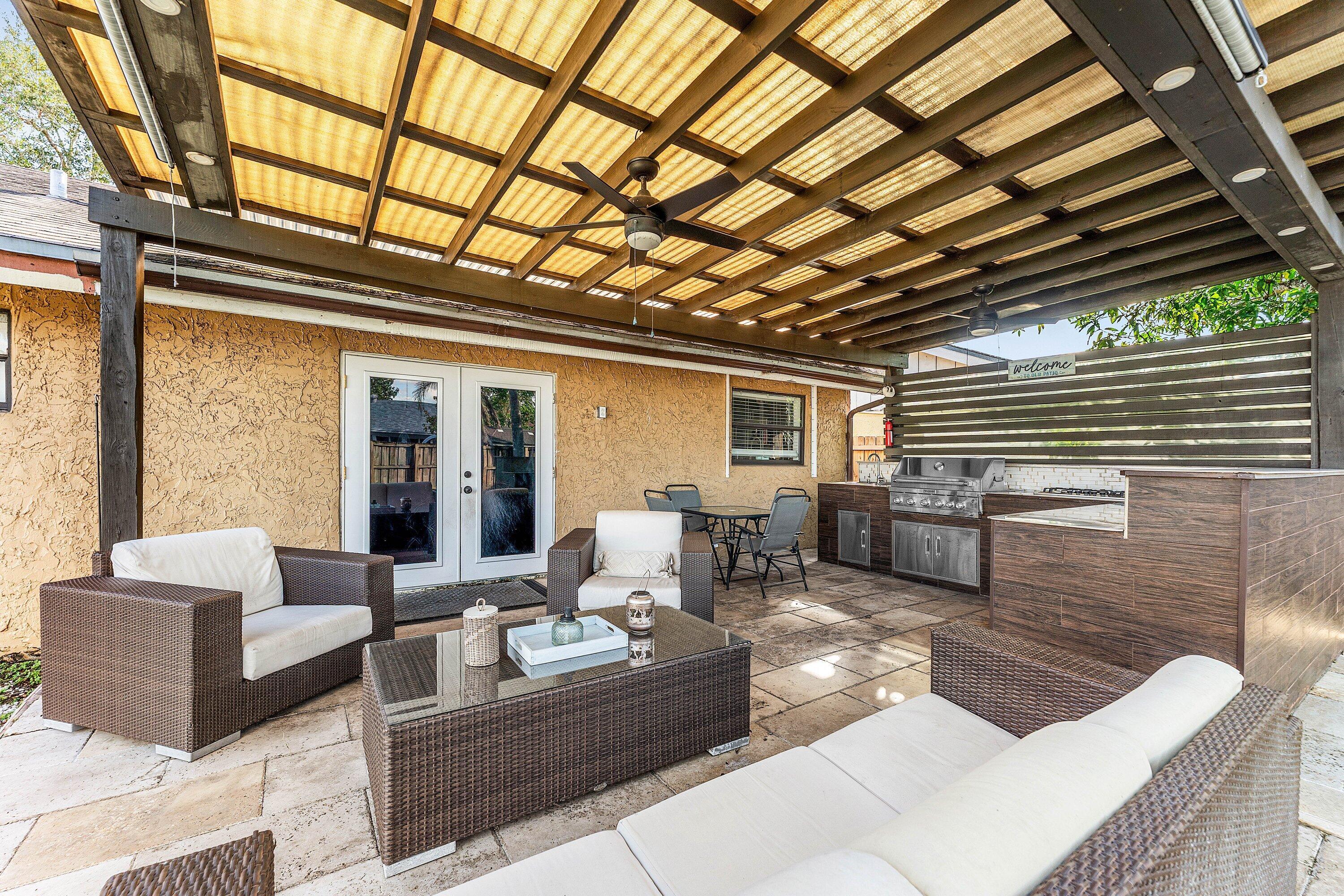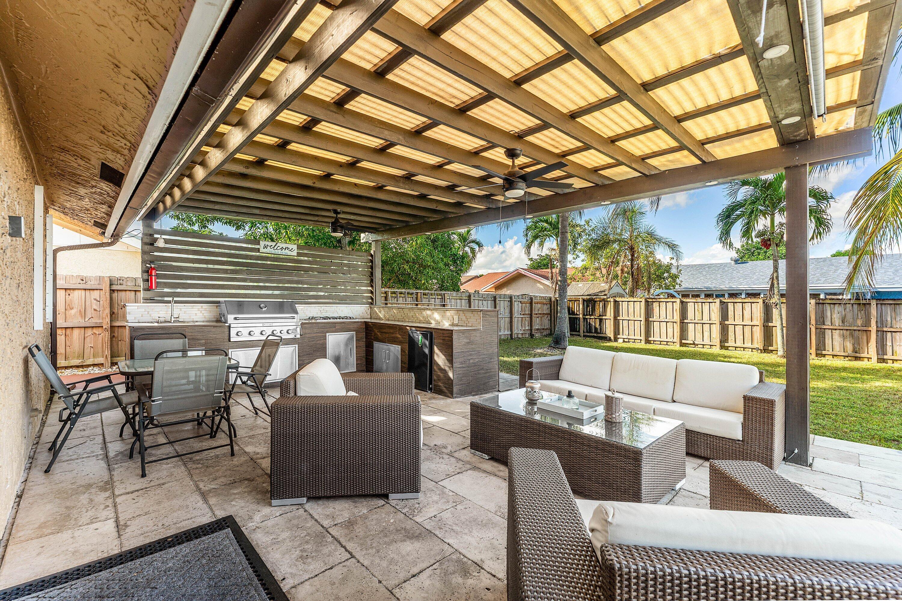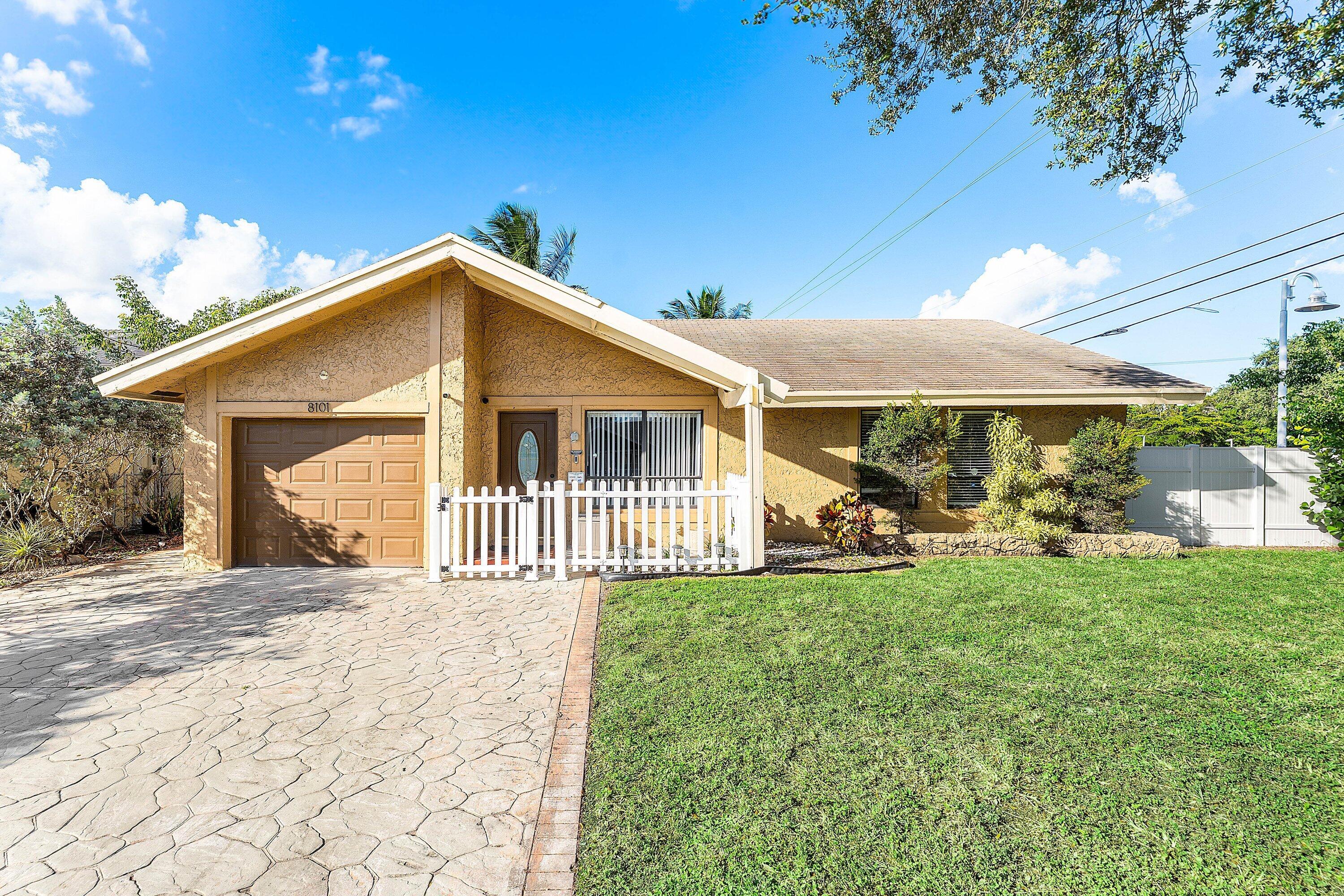 Purchase this fabulous 3 bedroom 2 bath home that has two majestic Coconut Trees, a sweet Mango tree fruit add flavor to your home. The corner lot is located close to shopping and has a magnificent Oak Tree out front that will make you proud to call this your Home.Ample parking and automatic Garage. Porcelain tiles throughout, granite countertops, stainless steel appliances. This home features an out door kitchen gas grill and stovetop cooking, refrigerator perfect for large parties or quiet entertaining within your fully fenced in yard. Perfect for families with a dog, Shed for extra storage. Outdoor slab for rv or boat. Come explore the perfect starter home today close to Sawgrass Mall, Turnpike, Pompano, Calvary Chapel Fort Lauderdale