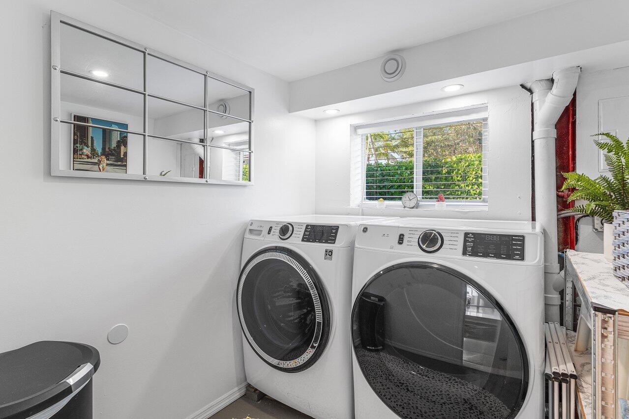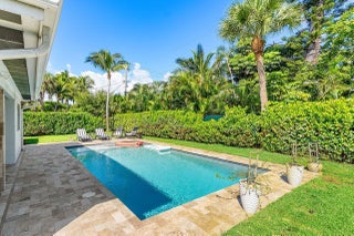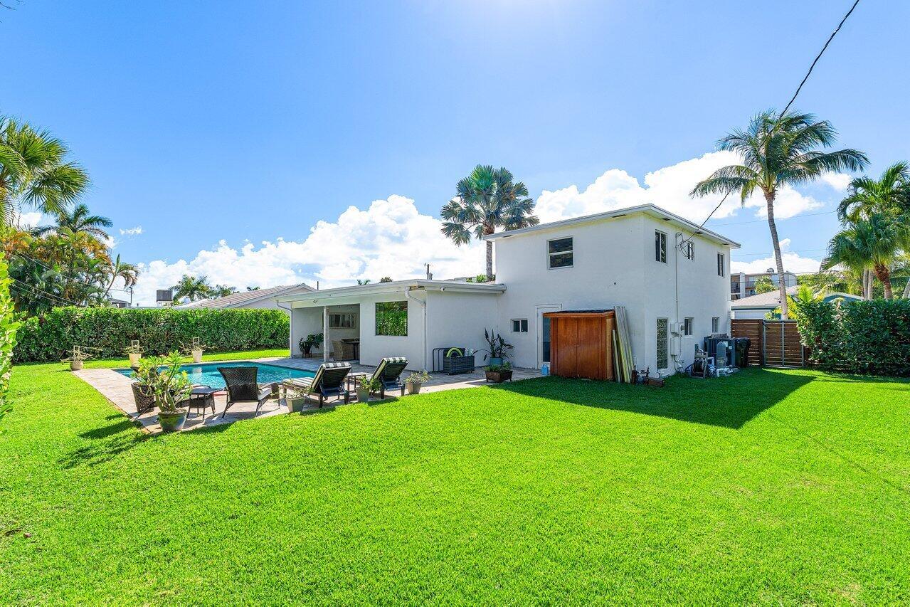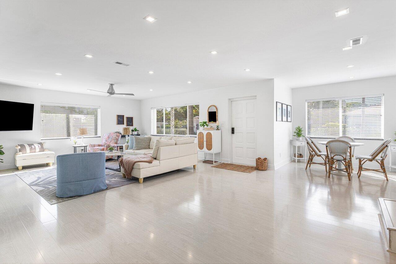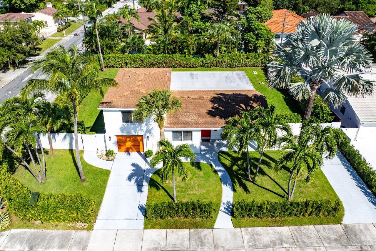 Discover this beautifully reimagined mid-century gem in the South Palm Park Historic District of Lake Worth Beach! Set on a rare double corner lot, this fully renovated home blends timeless character with modern comfort. The bright open layout features impact glass, a designer kitchen with Bosch appliances and quartz counters, and seamless indoor-outdoor living with stunning pool views. The backyard is framed by 10' Clusia hedges, creating a serene retreat with exceptional privacy for adults - complete with a new saltwater pool and travertine patio. Approved plans allow for a future first-floor primary suite and additional upstairs bedroom. Perfect as a short-term rental or your own lock-and-leave retreat, this residence embodies the essence of low maintenance, high-reward living.