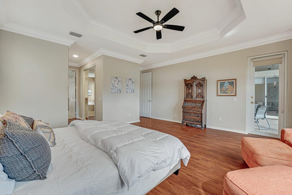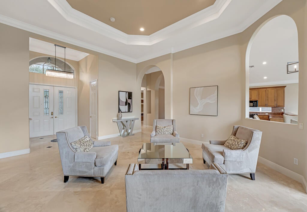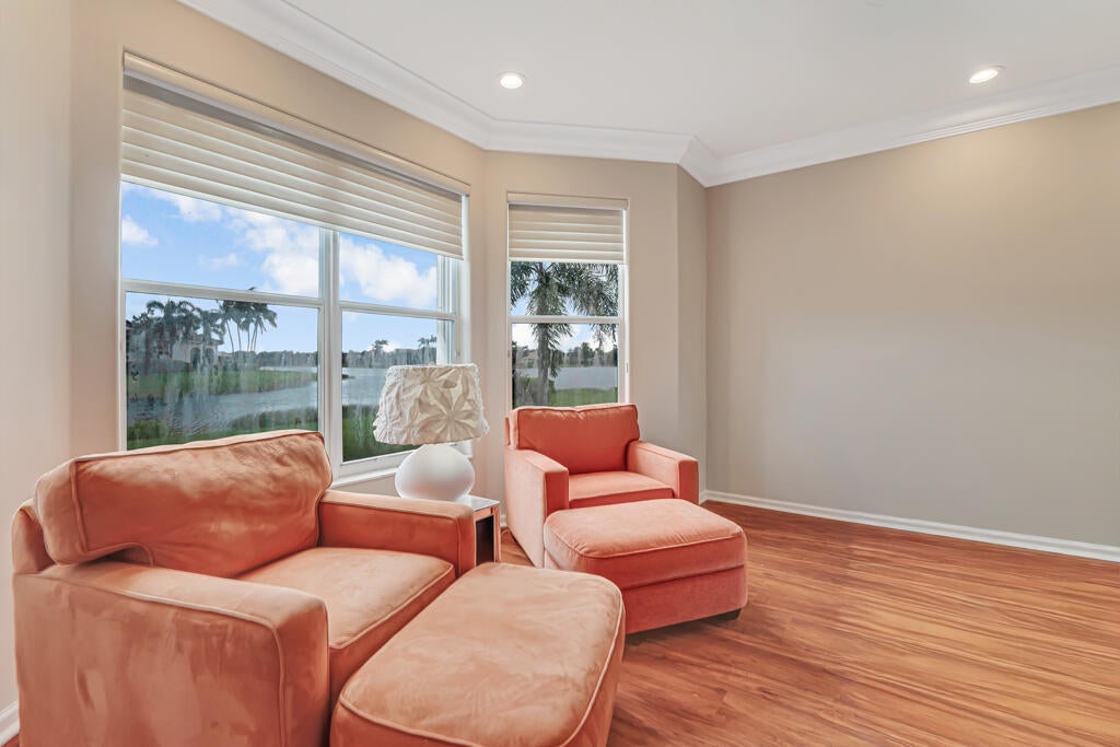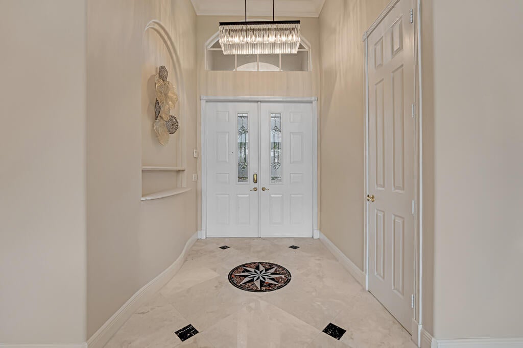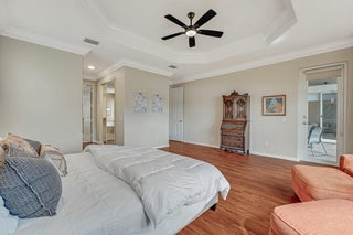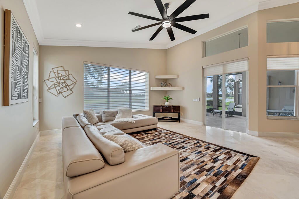 Magnificent MAIN LAKE WITH FOUNTAIN VIEWS make this 4 bedrm, 2 1/2 bath model home one of the most desirable in the community! A rare find, gorgeous marble floors & double entry doors greet you with light and bright open, airy space throughout! Gorgeous new lighting fixtures, LED high hats, super high ceilings, & a huge screened lanai with beautiful flooring , privacy overlooking water water everywhere create instant peace & serenity! No carpeting! Accordian shutter protection throughout! Walk to clubhouse, social tropical pool, full Serv restaurant, 6 pickleball crts, 3 Bocce crts! 10 tennis crts, 2 indoor racquetball CRTs, indoor whirlpool,resistance pool, lap pool too! Suana,steam, massage, Beaty salon, STATE OF ART FITNESS CTR! Country club lifestyle without the dues! LOVE THIS HOUSE!HOA FEE of 750 per month includes the following plus more: Outside painting of your home In home security system monitored Cable Tv incl HBO and more Hi speed wi-fi/internet Manned 24 gate security Irrigation system for your home Lawn maintenance & most landscaping $400 credit at restaurant per year Roof cleaning periodically Full time social director State of art fitness center and equipment so much more!!! live your best valencia life!