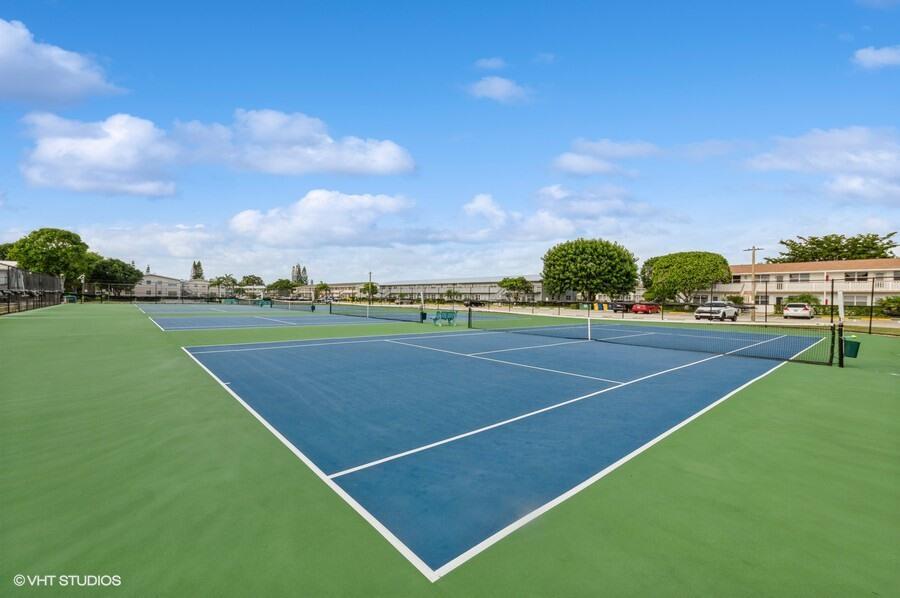 BEAUTIFULLY UPDATED LARGE 2 BED 2 BATH SECOND FLOOR CONDO WITH AMAZING WATER VIEWS. LOCATED IN THE HIGHLY DESIRABLE SOMERSET SECTION IN CENTURY VILLAGE A GATED COMMUNITY FOR ADULTS 55+. OPEN CONCEPT KITCHEN WITH NEW STAINLESS STEEL APPLIANCES AND QUARTZ COUNTER TOPS. BOTH BATHROOMS ARE TASTEFULLY UPDATED-ONE WITH STEP IN SHOWER AND THE OTHER WITH BATHTUB. ENJOY PEACEFUL WATER FROM THIS MOVE IN READY HOME WITH CENTRAL AIR AND MODERN FINISHES THROUGHOUT. WELL MANAGED ASSOCIATION NEW TIN ROOF GOOD RESERVES.Roomy closets (one walk-in), screened-in patio, laundry room, assigned parking spot plus visitor parking available local bus for errands/shopping both within & outsidethe village . STEPS TO THE SOMERSET SPORT COMPLEX FEATURING TENNIS COURTS, PICKLEBALL AND A SWIMMING POOL. COME ANENJOY RESORT STYLE LIVING. Clubhouse with theater, shows, movies, craft and card rooms, LUBHOUSE features a theater, indoor pool, card room, community/party room, billiard room ,shuffle board ,tennis , pickleball ,bocce and two outdoor pools. Numerous heated outdoor pools throughout the community. Separate fitness center with gym , outdoor heated pool and a resistance pool. Two guarded gates and 24 hour roving security patrol. GREAT LOCATION: close to shops, restaurants, PBI airport and beaches.