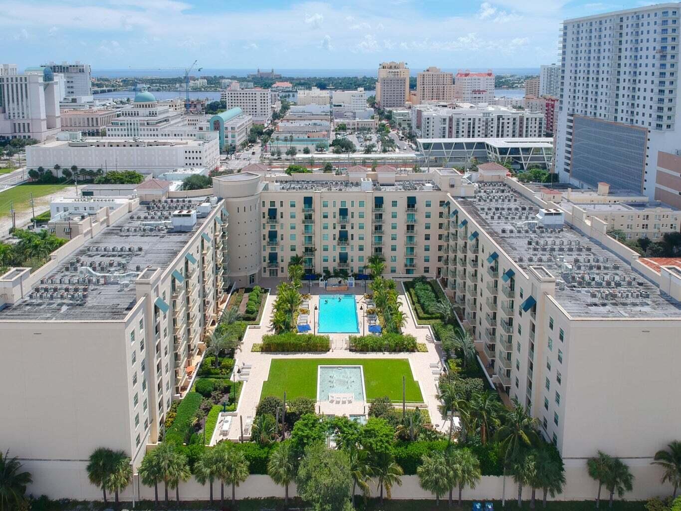 Most popular location Downtown...Luxury Condo Building located on Clematis Street across the street from police department next to post office 2 blocks to grocery store. Walk and bike ride everywhere. Public library a block away ,restaurants and shopping in the entertainment district.Brightline Train 1 block away .610 Clematis has 24/7 Bldg Security & guard also full concierge service, key fob Bldg entry with cameras, Heated resort pool & Hot tub , Full Gym, Steam Room & Suana, 2 Gas Grill areas.Property has 2 bedrooms 2 baths, granite kitchen & baths. Property has a balcony with views of Clematis Street no powerline views from this balcony. Tile throughout & newer carpet in bedrooms.Property is furnished with living room & master bdrm furniture . Property has 1 garaged parking spot.