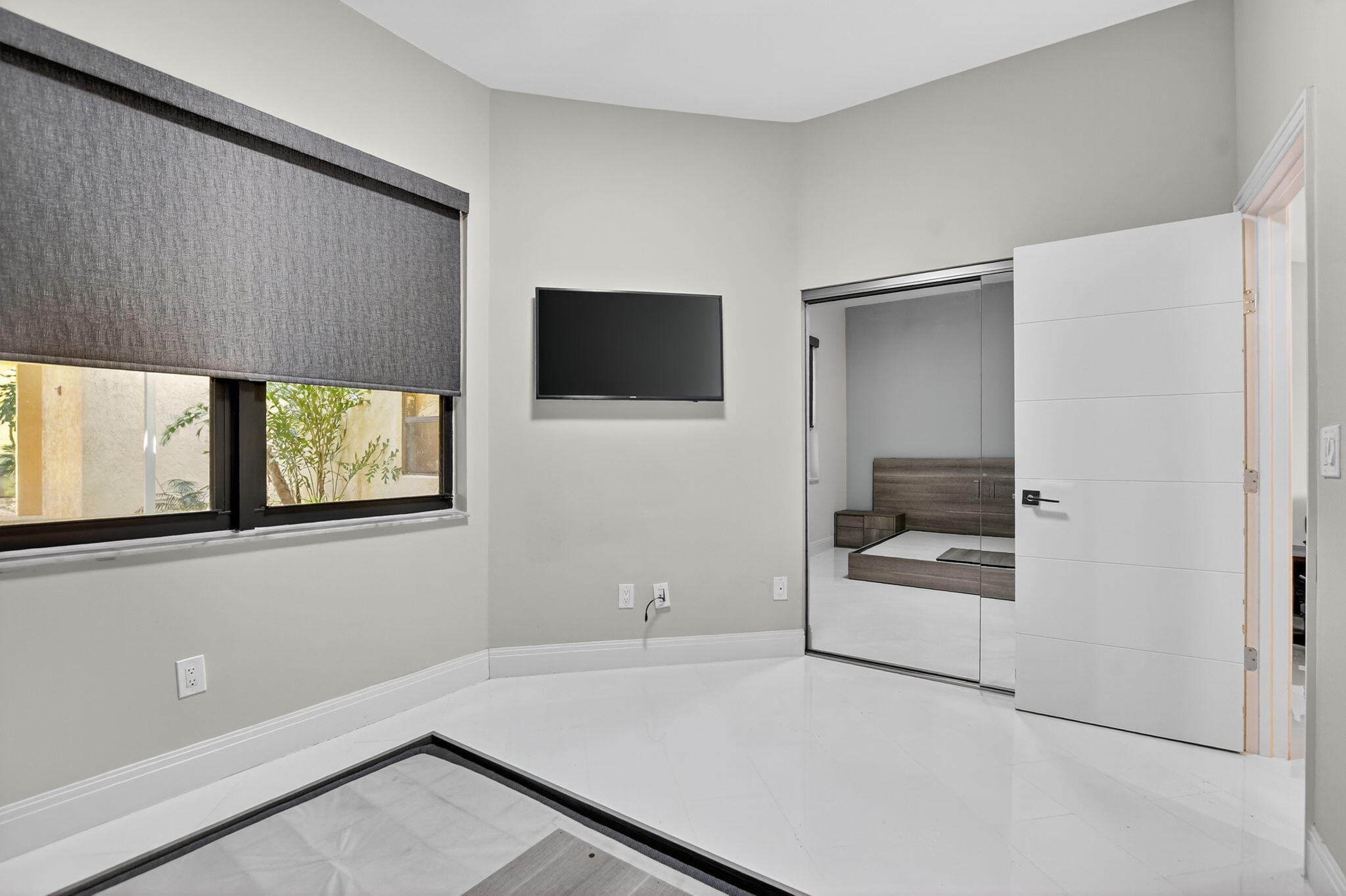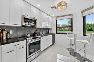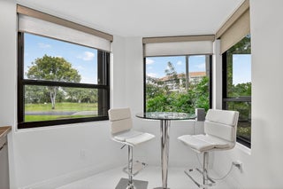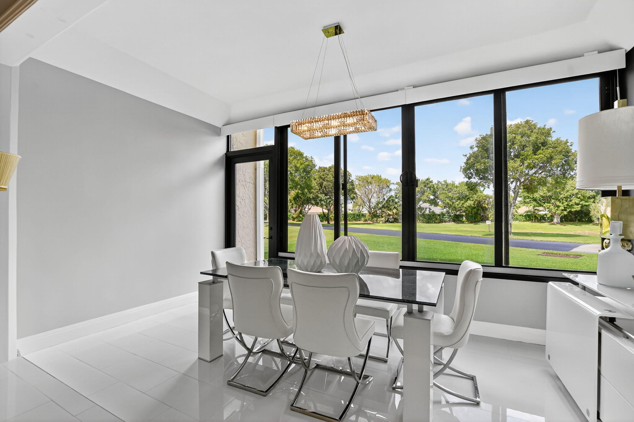 Fully renovated 2BR/2BA ground-floor corner condo in La Paz at Boca Pointe, an all-ages, guard-gated community with optional club membership. 1,636 total sq ft (includes Florida room & lanai) with no stairs or elevators required. Modern kitchen with white gloss cabinets, quartz leather counters, backlit stone geode pass-through, and Samsung appliances. Dining room opens to a glass-enclosed Florida room with walkout access and tranquil lake and garden views. Kitchen and primary suite open to a screened lanai. Porcelain tile floors, motorized blinds, full impact glass, and storm shutters. Primary bath features jetted tub, frameless shower, and double vanity. Guest bath with sleek stall shower. In-unit washer/dryer, new A/C, assigned parking. Two pools, tennis, clubhouse, Covenient to ALL!Live the Boca lifestyle in this beautifully renovated 2-bedroom, 2-bath home in La Paz at Boca Pointe, an all-ages, guard-gated community with RARE optional country club membership. This ground-floor corner unit offers 1,636 total square feet (including the Florida room and lanai) split floor plan with no stairs or elevators required, designed for comfort, style, and easy living. The dining room opens to a glass-enclosed Florida room with direct walkout access, creating a bright indoor-outdoor flow with tranquil pond and garden views. The kitchen features white gloss cabinetry, quartz leather countertops, a dramatic backlit stone geode pass-through, and premium Samsung appliances. Both the kitchen and primary bedroom open to a screened lanai, ideal for morning coffee or evening relaxation. Porcelain tile flooring, motorized blinds in living space, blackout blinds in bedrooms, and full impact glass windows enhance beauty, efficiency, and peace of mind. The primary suite offers a spa-inspired retreat bath with a jetted soaking tub, frameless walk-in shower with a waterfall shower head, and a double vanity. The guest bedroom & adjacent bath with a sleek stall shower mirrors the same modern design aesthetic, just perfect for guests or a home office setup. Added features include storm shutters, an in-unit Samsung washer and dryer, assigned parking, and extra storage. Residents enjoy two resort-style pools, tennis courts, a small clubhouse, and scenic walking paths. Optional Boca Pointe Country Club membership provides access to golf, tennis, fitness, dining, and social activitieswith no mandatory fees. Located minutes from Boca Raton's beaches, shopping, dining, major highways, and top-rated schools, this home offers the perfect blend of modern updates, luxurious amenities, and peaceful lush surroundings. Make this beautiful residence at 7535 La Paz Boulevard, Unit 105, Boca Raton, FL your new home. Schedule your private tour today and experience the best of Boca Pointe living. Furnishings Available. *Some photos virtually staged
