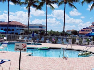 BEAUTIFULLY RENOVATED IN 2022, SEE PHOTOS OF ALL WHITE KITCHEN, ALL 3 BATHROOMS, FLOORS, AC, WATER HEATER, EVEN THE GARAGE FLOOR! CLOSE TO POOL, ONE SMALL PET OK. Golf and Clubhouse NOT included, but non-owners may possibly join with Fees, call Clubhouse.