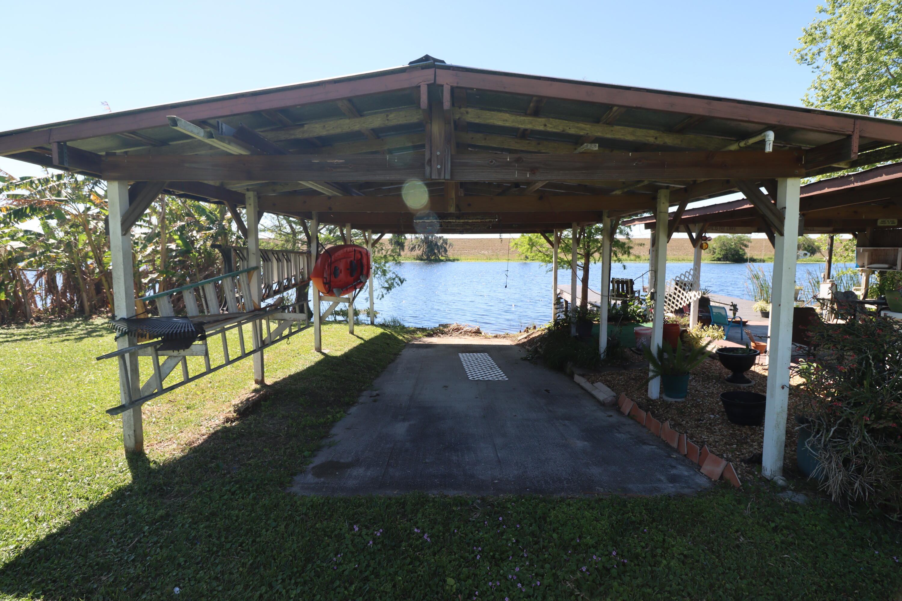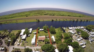 Lake Okeechobee access-1996 Concrete block, single family home. 1581 sq ft under air, 2139 sq ft under roof. 2 bedroom 2 bath, solid construction, upgraded windows, spacious lanai overlooking the wide access canal to Lake Okeechobee and near the navigational boat lock leading into Lake O. Deeded private dock and private BOAT RAMP on this deep lot. Covered outdoor sitting area on shoreline. Island kitchen, huge walk-in closet, new a/c unit, new roof. This tidy property with survey is located in SE county, has easy access to Martin & Palm Beach County. Come see this fantastic home on the water.