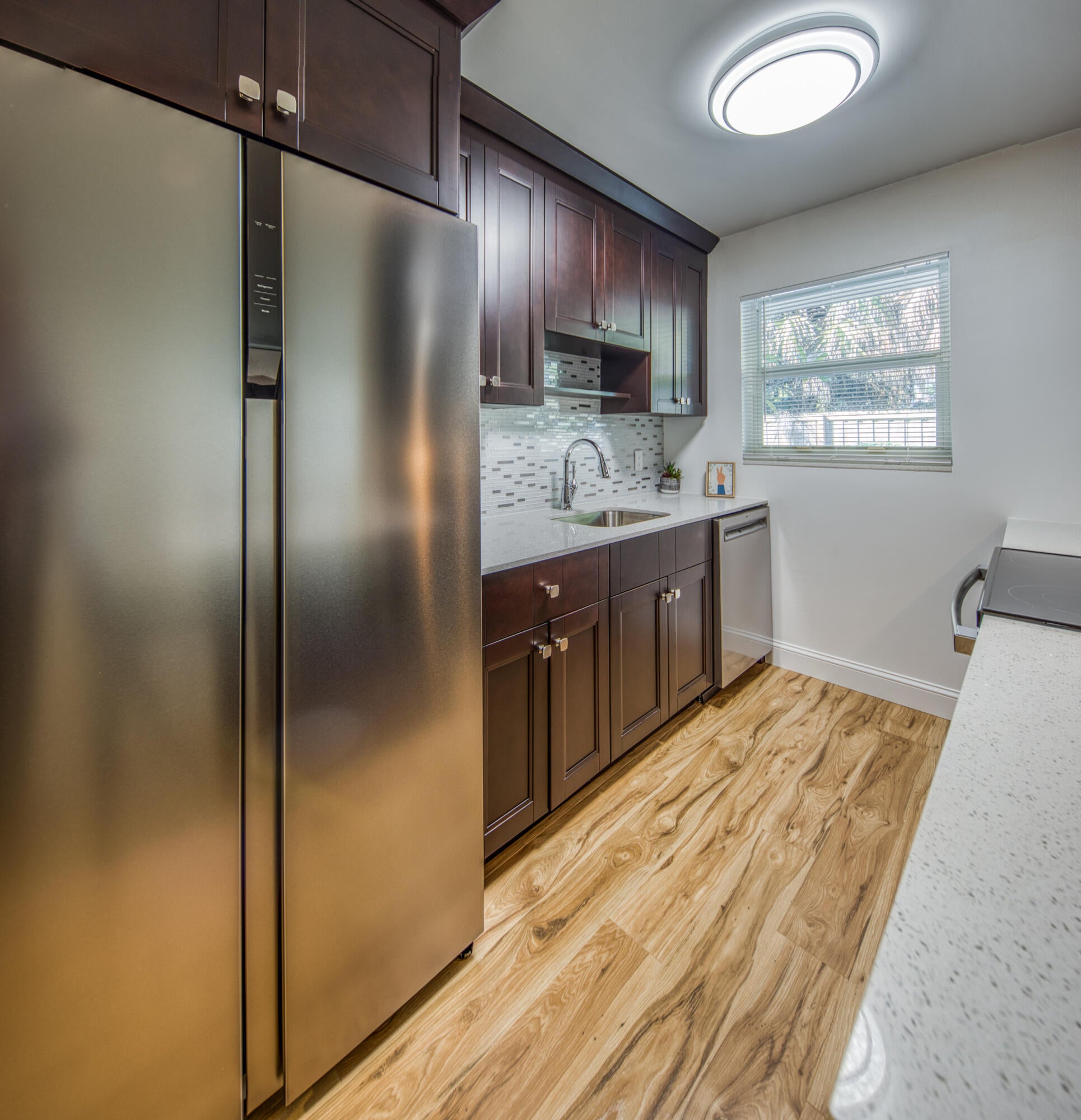 Beautifully remodeled-move right in! All new bathroom with walk in shower, kitchen with fabulous counter seating, new range-micro-dishwasher and fridge. Plenty of room for table/desk area plus tons of storage including a full size pantry, linen closet, walk in storage closet as well as wall to wall bedroom closet. New floors throughout! On premise laundry is just steps from this stunning 1st floor unit. Located a few blocks north of vibrant Lake Worth Beach downtown nightlife, restaurants, music venues (Bamboo Room) and art scene. Home to the country's largest Street Paint Festival (chalk) and minutes away to Benny's On The Beach! Also includes assigned off street parking steps away from unit. Your best of ALL worlds awaits you.