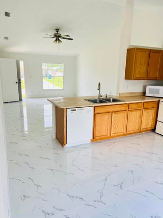 Welcome to this charming and meticulously maintained 3-bedroom, 2-bathroom home, perfectly situated on an expansive lot in a desirable Palm Bay neighborhood. This property offers the best of Florida living, combining a peaceful residential setting with quick access to local amenities and major roadways. It's a fantastic opportunity for first-time homebuyers, families, or anyone looking for a worry-free, turnkey residence.Property also features stunning new high end porcelain tile, new water heater and new air conditioner. Also has a great condition water system that avoids you having a water bill. Don't miss this opportunity to own in the Popular Palm Bay at an incredible price!!