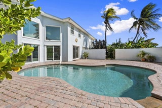 Discover this spectacular, ocean view, multi-generational home on Hutchinson Island with private beach, totally rebuilt 2010-2017. New metal roof in 2024. Pool & in-ground spa. Beautifully furnished. Guest area on ground floor with 2 beds, 1 bath, kitchenette & living room. Upstairs with ocean view, wood floors, great kitchen including stainless appliances with wall oven, cook-top, wrap-around bar, & two sinks. Living room conversation area, & outside wrap-around balcony. Huge main bedroom with oversized walk-in closet, bath with marble floors, shower & tub with jets. Only 5 minutes to Fort Pierce Inlet South. Great house for entertaining.