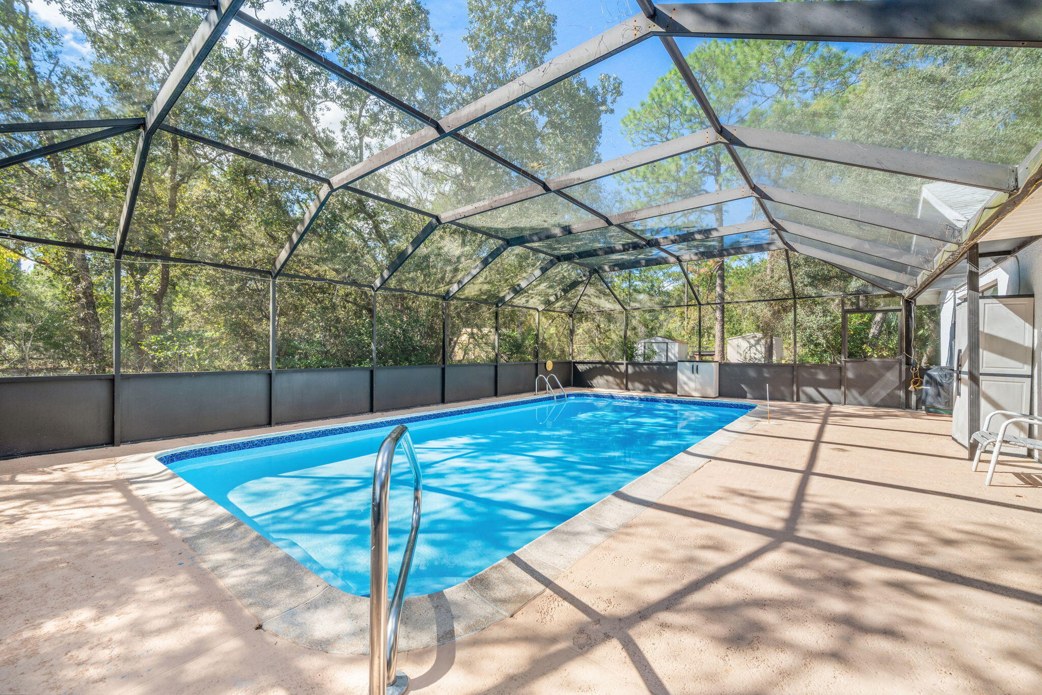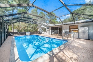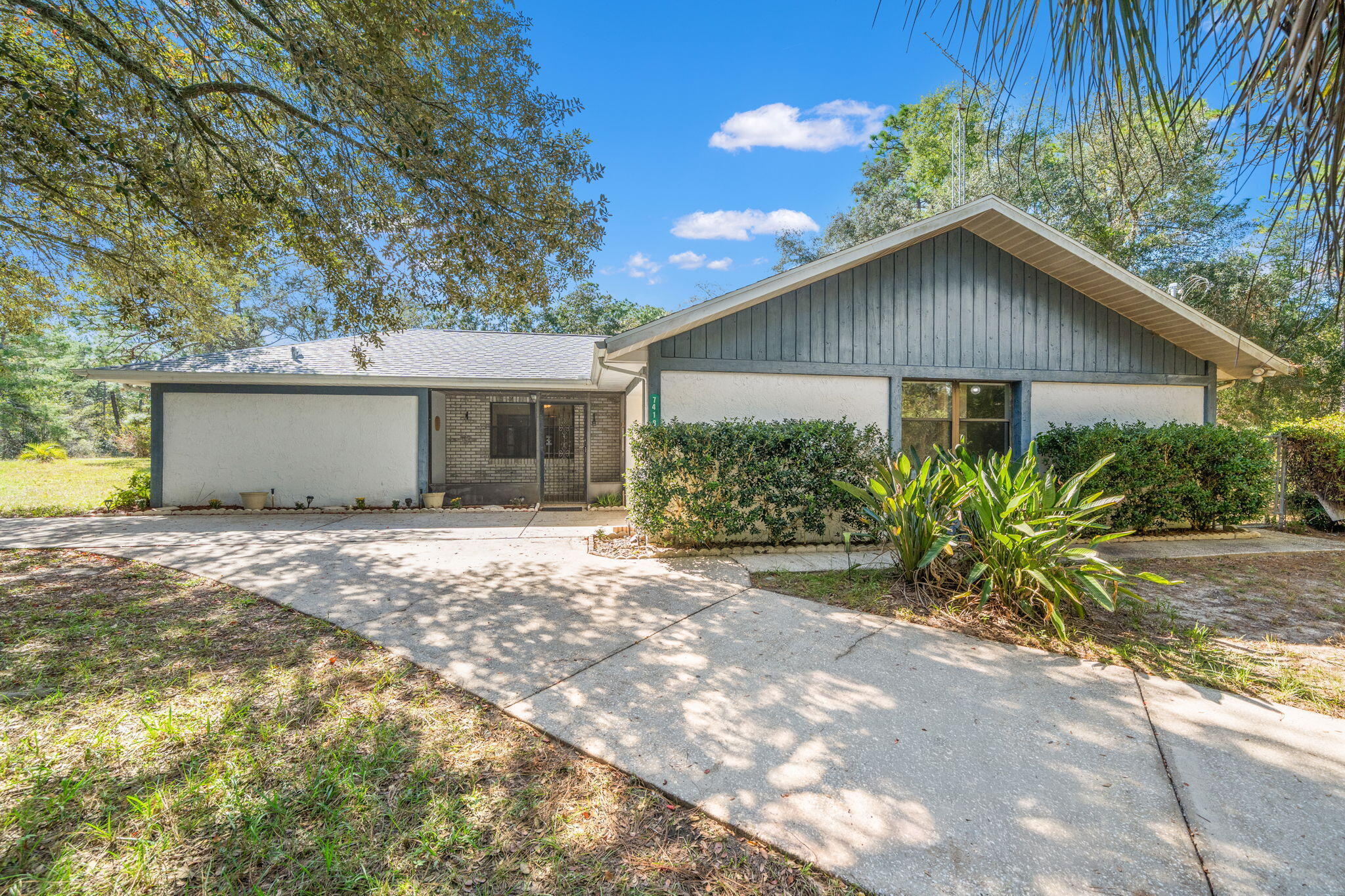 Welcome to 7418 N Firwood Circle, a well-maintained 4-bedroom, 2-bath concrete block home on over an acre in peaceful Citrus Springs. Surrounded by forest on three sides, this private retreat offers an in-ground pool, fenced yard, two sheds, and a greenhouse. Updates include a new roof (2024), water heater (2025), HVAC (2021), fresh paint, new screens, upgraded lighting, and refinished pool surfaces. Inside, enjoy a bright kitchen, open living and dining areas, tile floors, and two enclosed bonus rooms. Lush landscaping with azaleas, camellias, magnolias, and a Meyer lemon tree creates a vibrant outdoor oasis. No HOA, minimal traffic, and clear skies for Cape Canaveral views!