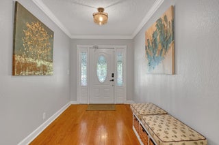 A must see one of a kind, Hidden Gem! This Estate on over 5 acres has a perfect blend of luxury, privacy & resort-style living. Main house offers 5 bdrms, 3.5 baths, chef-inspired kitchen, brick fireplace & primary suite w/ sitting room overlooking heated resort-style pool. Private guest house features 2 bdrms, 1 bath, spacious living area, game room & screened patio. Outdoor spaces include a large, covered patio, tiki hut (w/ electric), Chicago brick pavers, tranquil pond w/ fountain, gazebo & dock for sunset relaxation plus bocce & basketball court. Fully fenced yard w/ electric gate entrance, impact door & windows, propane generator & 2 covered parking areas. NO HOA. A-Rated schools. Endless Possibilities. DO NOT miss this one!
