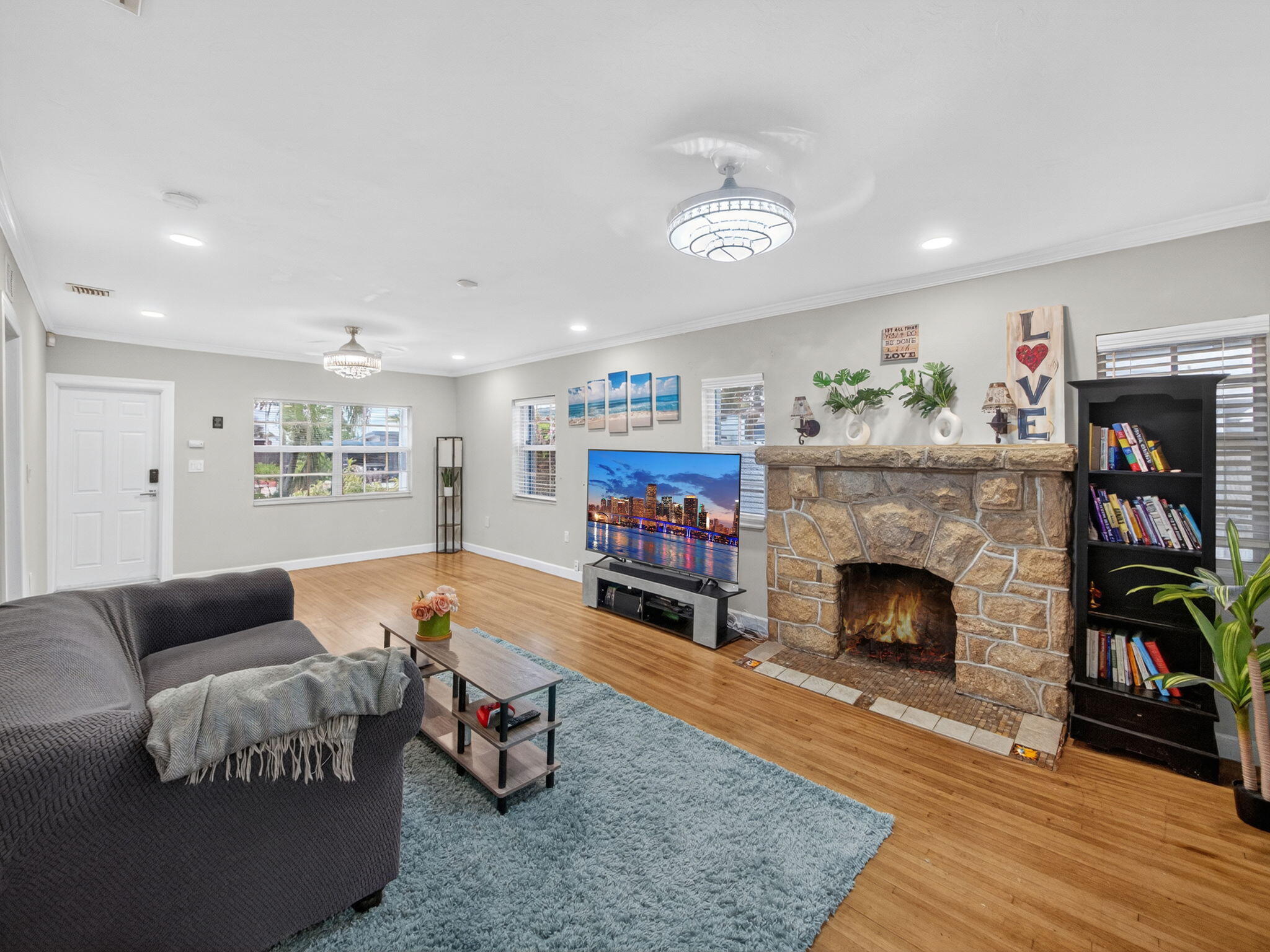 Two Homes for the Price of One, Live Smart with Built-In Income, Live in one, rent the other, let your tenant, family/in-law help pay the mortgage. or occupy the back unit. Just 2 miles to the beach and 1 mile to Publix, this Ocean-Blue, hacienda-style property delivers the rare combo of charm, location, and cash flow. The beautifully updated 2BR/1BA main home blends character and convenience--wood floors, crown molding, cedar ceilings, and accordion shutters--centered by a renovated kitchen with quartz counters, backsplash, and stainless appliances. Slide out to the spacious covered/screened lanai for morning coffee, surrounded by avocado and mango trees, then rinse off in the outdoor shower after a beach day.A private 1BR/1BA side apartment with its own entrance adds seriousversatility proven Airbnb history averaging $3300/month for the front unit, or a steady a steady long-term lease of $1,600/month for the back unit. Big-ticket items give peace of mind: 2018 roof, updated drainage/gutters, newer A/C motor, and full hurricane shutters that may help with insurance. Minutes to Lake Ave., Dixie Hwy dining, boutiques, Lake Worth Casino and the sand! This is the coastal life with a financial upside.