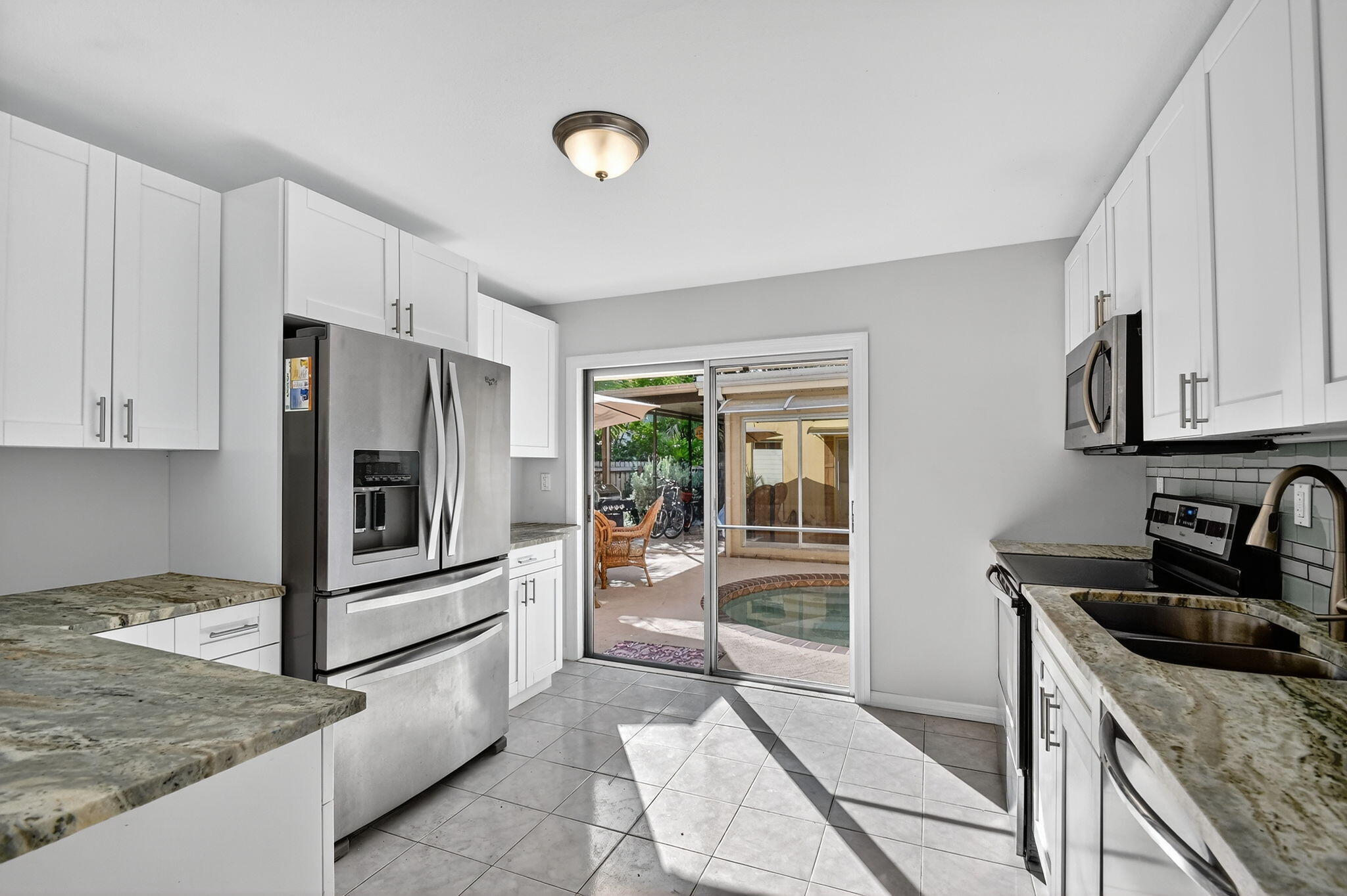 Stunning Remodeled Poolside Suite East of Federal in cty's most desirable neighborhood, Bryant Park. 2 blocks from Intraacoastal Waterway. 2 Blocks to the Bohemian Artsy downtown Blvd.Gorgeous new kitchen with Leather wrapped granite Countertops and view of the pool, literally 5 feet from your sliding glass doors.