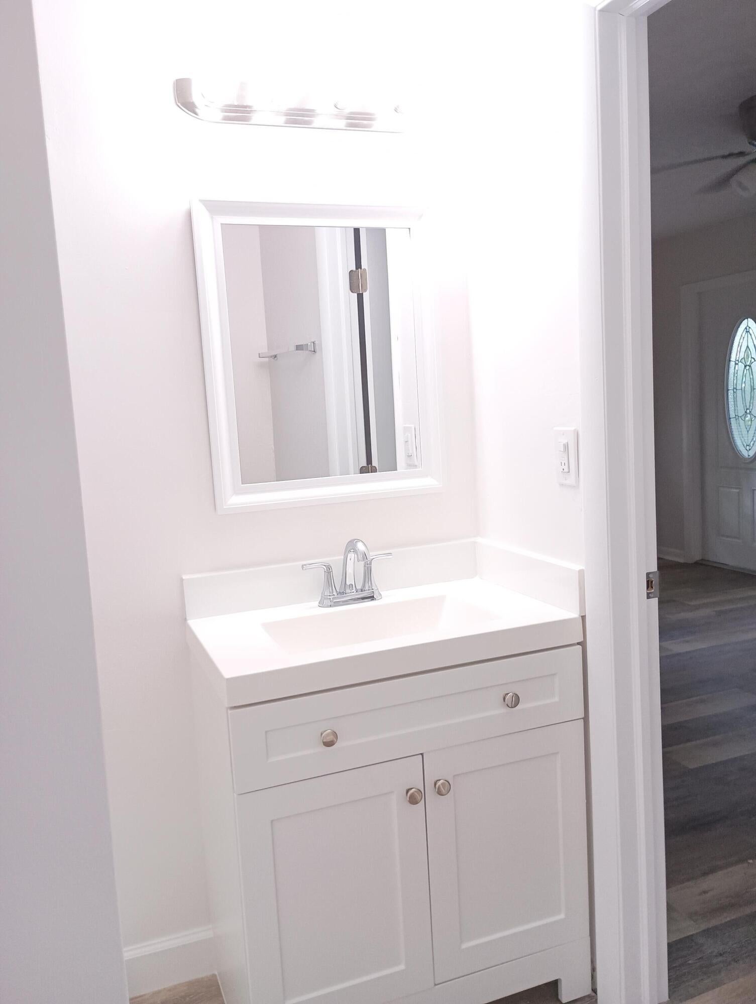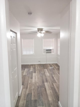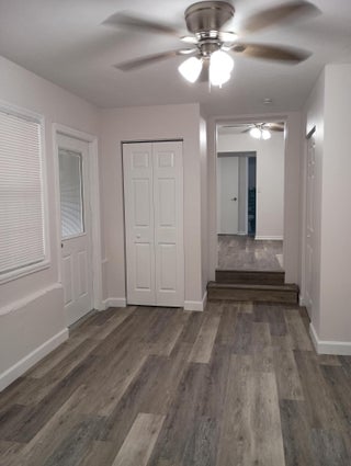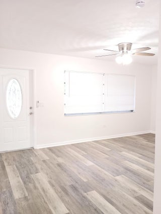 Spacious three bedroom two bath home with screen patio in front of house. Home has been recently painted,with new wood like flooring, fans, lighting, blinds,. the kitchen has lots of cabinets for added storage. Washer and dryer with a separate storage building in back of house. A private fenced back yard,with parking in back area of home. Centrally located, close to shopping and restaurants this home is ready for move in.