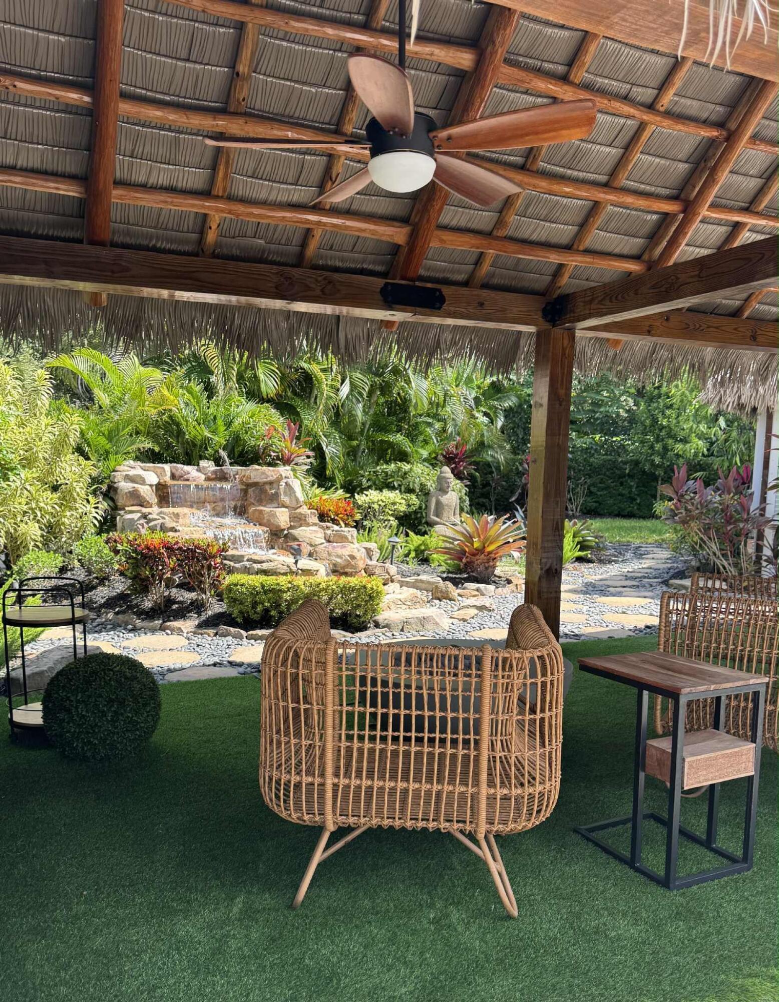 Discover this exceptional Class A Motorhome lot in the luxurious Aztec RV Resort.This phenomenal 6,911 sq.ft. lot feels like your own private resort, designed for luxury outdoor living.Relax beneath a grand 25x25 Tiki with a synthetic palm roof, complete with a custom outdoor kitchen, BBQ, and spacious lounge area.Unwind in the second Zen retreat Tiki, where a fire pit and cascading waterfall set the stage for unforgettable evenings under the stars.A private garage accommodates your car and golf cart, while a guest house offers every comfort a'' bathroom, shower, Murphy bed, washer/dryer, and A/C.Every detail has been crafted to perfection and is sold fully furnished to the highest standard. Just bring your suitcase and start living the dream !