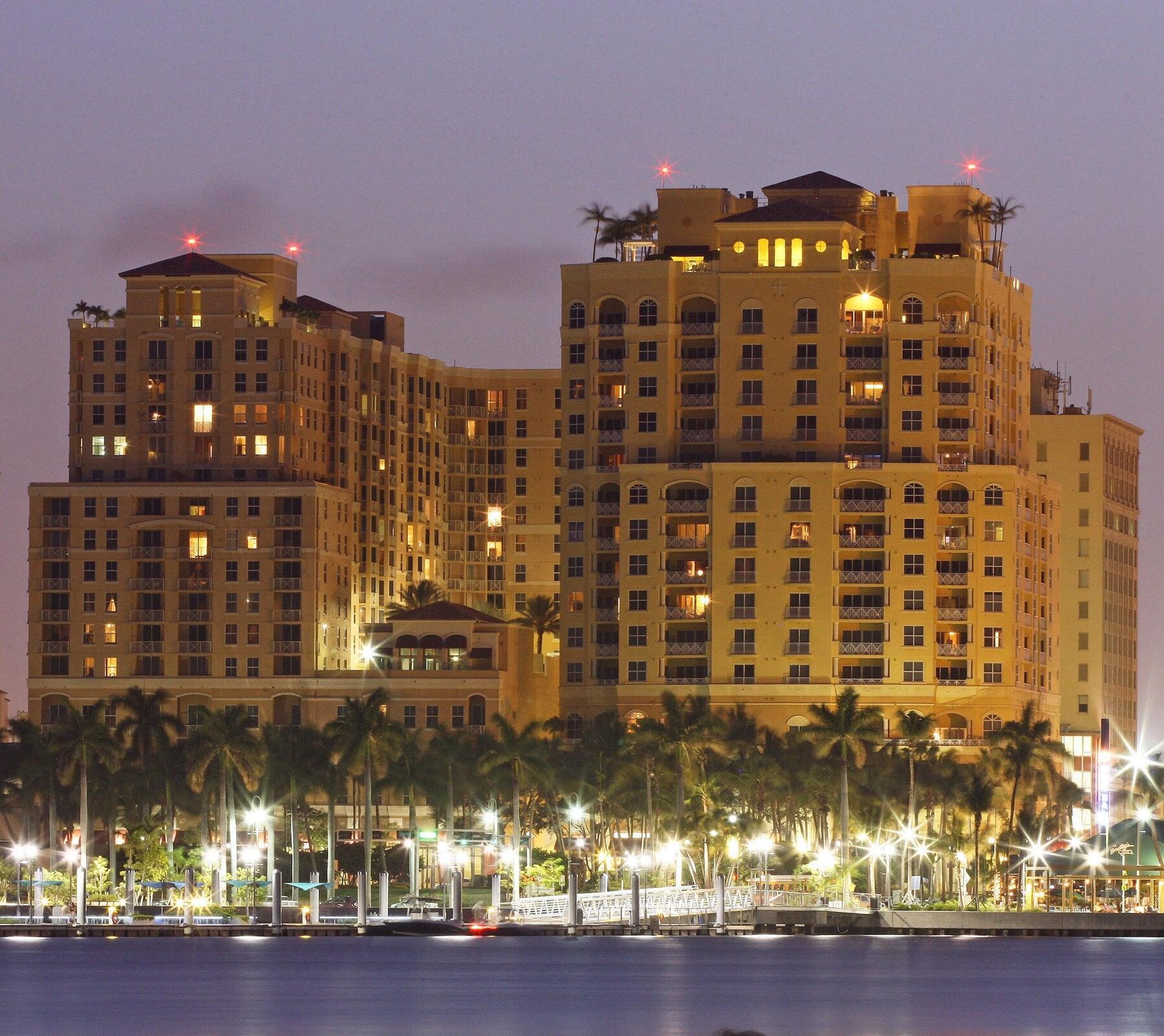 Furnished 2 bedroom 2.5 bath in a Class A Building. 10 ft ceilings, crown molding, che's kitchen with cherry cabinets, granite and stainless steel appliances. Private elevator. Foyer, garden terrace w/whirpool spa, fitness center, club room, 24 hr concierge, valet parking. This property boasts a tropical roof pool & gardens. Sky lounge. Stunning views of Intracoastal each to the ocean & Palm Beach.