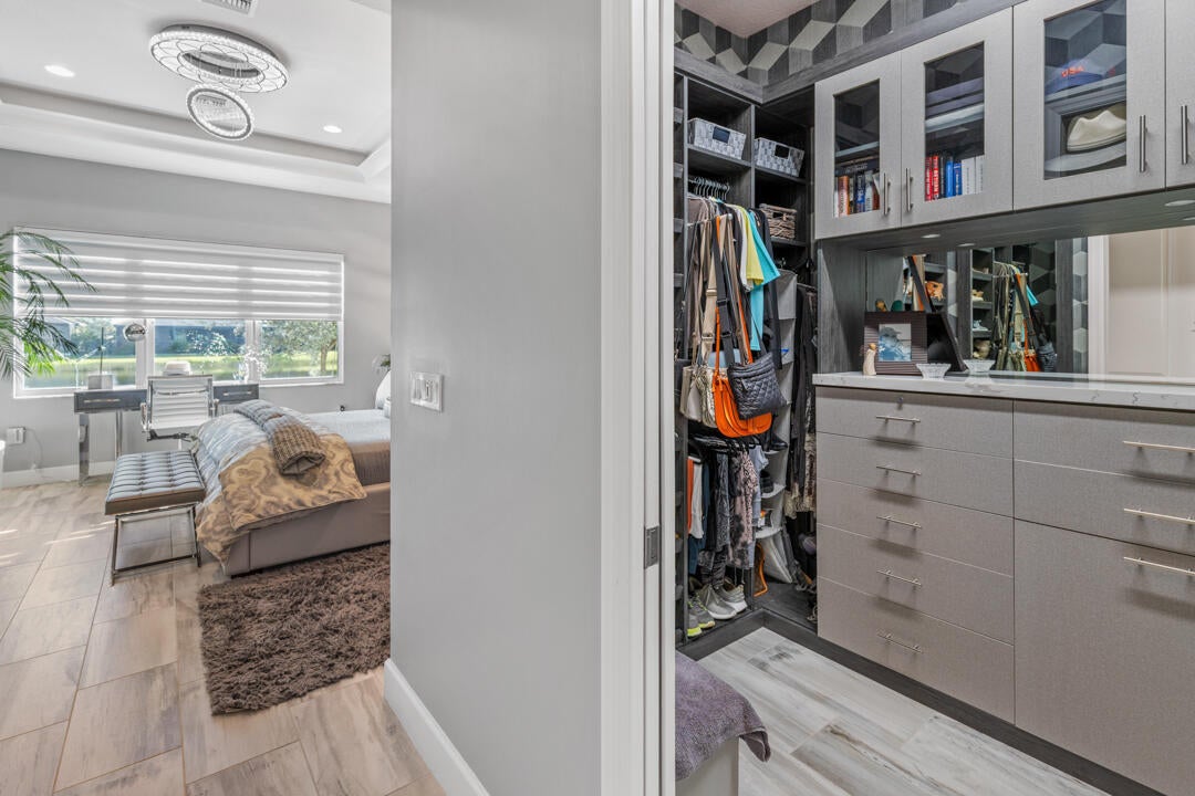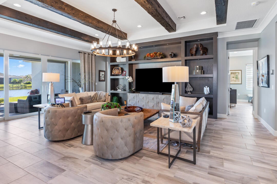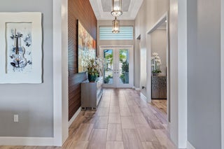 Step into modern luxury and be impressed by a home that effortlessly combines elegance with cutting edge convenience. Upon entry, you're welcomed by a striking bamboo paneled feature wall, setting a refined tone that resonates throughout the 2753 sq. ft. of living area, including 3 spacious bedrooms and 3 and 1/2 exquisite bathrooms. The great room exudes sophistication, highlighted by handcrafted beams and custom built shelving that encase the entertainment center. The gourmet kitchen stands ready to delight any chef, featuring premier appliances, expansive cabinetry adorned with granite tops and full backsplashes, you have ample storage and a perfect lakefront setting for culinary endeavors.Enhancements such as upgraded air conditioning system elevate the home's comfort and appeal. The waterfront locale provides serene vistas, while the full three car extended garage is equipped with an electric automobile charging outlet, adding to the home's future-forward features. This home is a haven of modern, sultry and enticing sophistication where every detail is designed to impress. Discover refined living at 11991 Southwest Whitewater Falls Court, Port St. Lucie, FL. This chic 3-bedroom, 3.5-bathroom home spans 2,753 square feet of luxurious space. The open kitchen is a chef's delight where you can entertain in style with extensive Level V cabinets, and a all upgraded LG appliances. Meal prep is a breeze with both an island and peninsula. Retreat to the owner's suite, a sanctuary featuring double walk-in closets with sophisticated built-ins and an ensuite bathroom with dual vanities and a spacious premium-tiled shower. Enjoy the convenience of a raised LG Front Load Washer and Dryer in the laundry room. This home boasts modern amenities like automated shades, impact windows, and upgraded tile throughout. The oversized garage accommodates three cars and includes epoxy floors, extra storage, and is pre-wired for an electric car. Enjoy water views from the southeast-facing back patio, set up for a future summer kitchen. The community offers a plethora of amenities, including a waterfront, indoor pool, gym, and more, alongside the vibrant Valencia Grove's clubhouse just blocks away. Indulge in a lifestyle where elegance meets everyday convenience. Riverland is the most popular gated community and amenity-rich location on The Treasure Coast. Close to major highways, shopping, entertainment, beaches, waterways and restaurants....Just 45 minutes to Palm Beach International airport and additional local airports, including Witham Field for your private plane. Enjoy world-class amenities, including a 14-acre sports club, fitness center, tennis, pickleball, bocce, multiple pools, a full-service cafe, and over 5 miles of greenways. Relax in the hot tub, visit the community garden, or gather in open spaces. Embrace the Lifestyle that you have always deserved! All measurements approximate. All information provided deemed reliable, but is not guaranteed and should be independently verified.