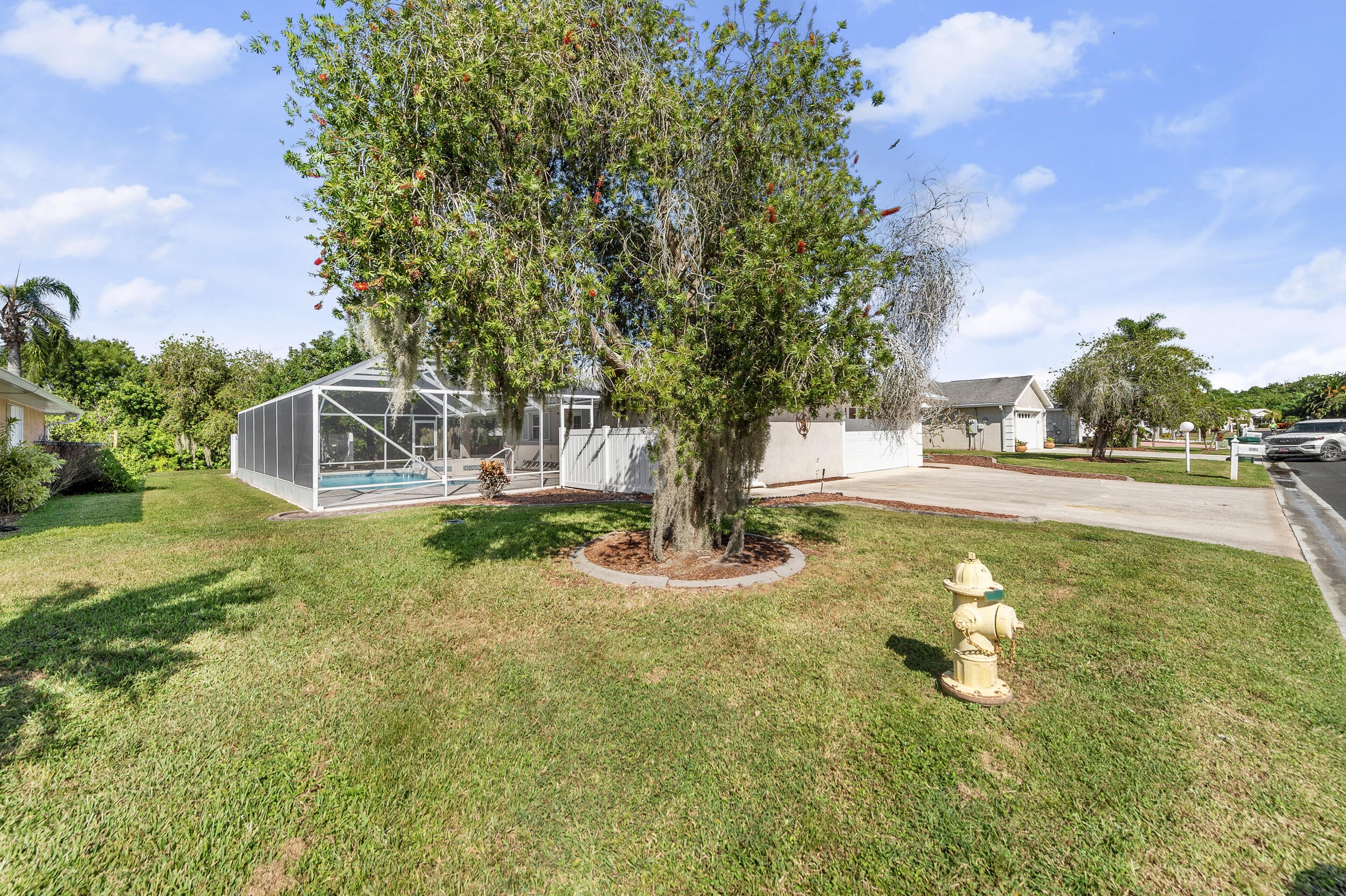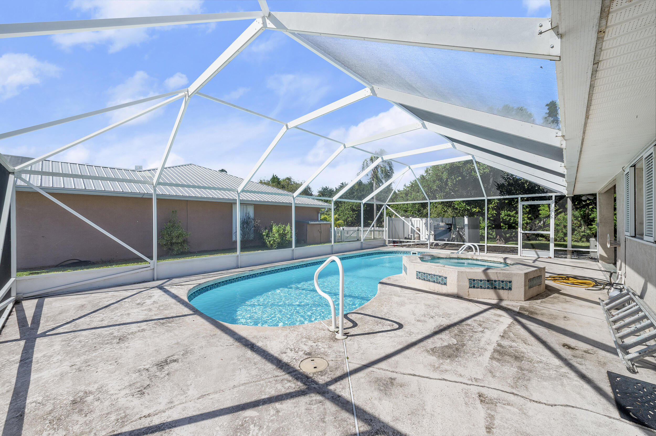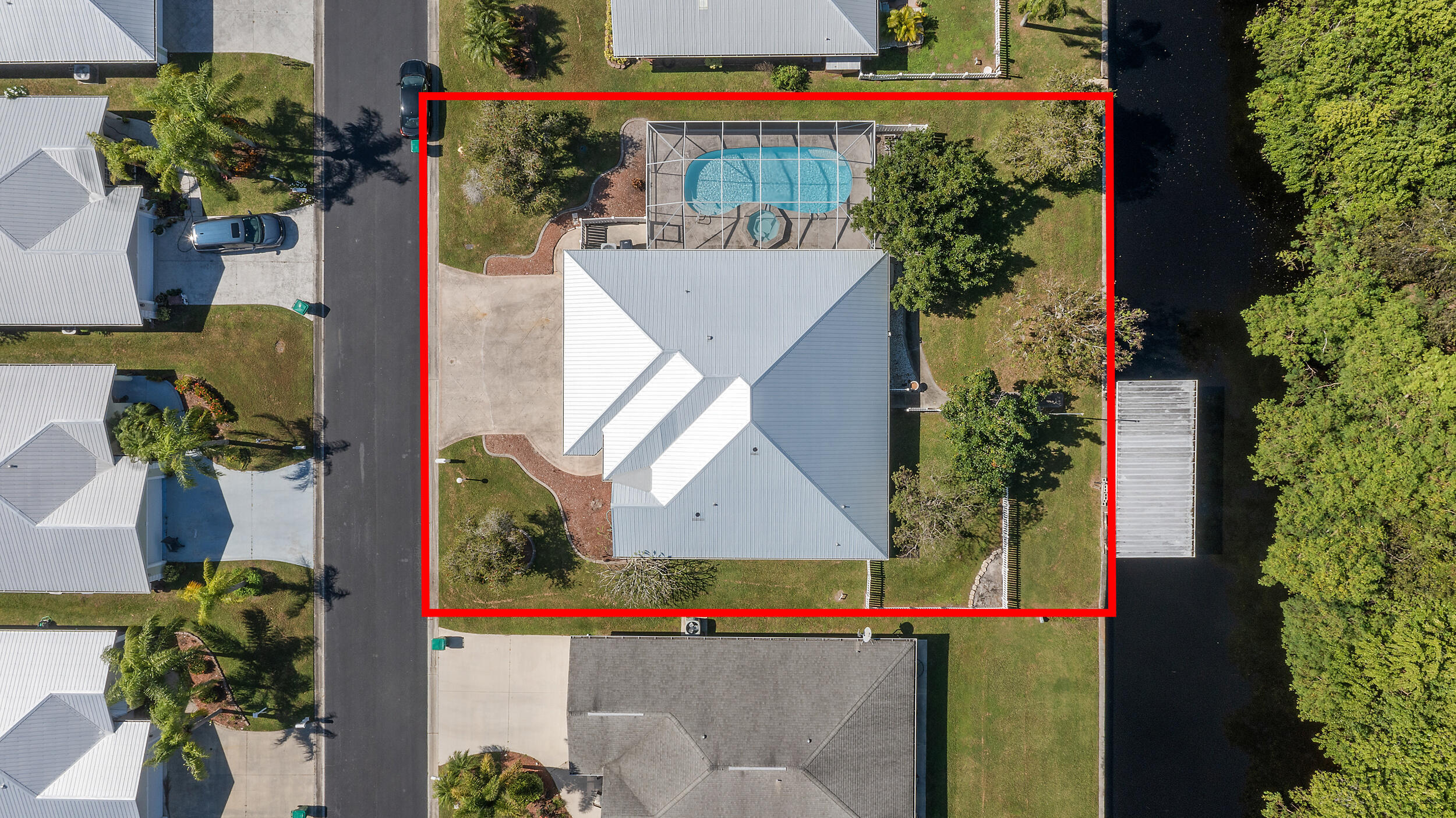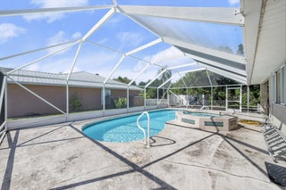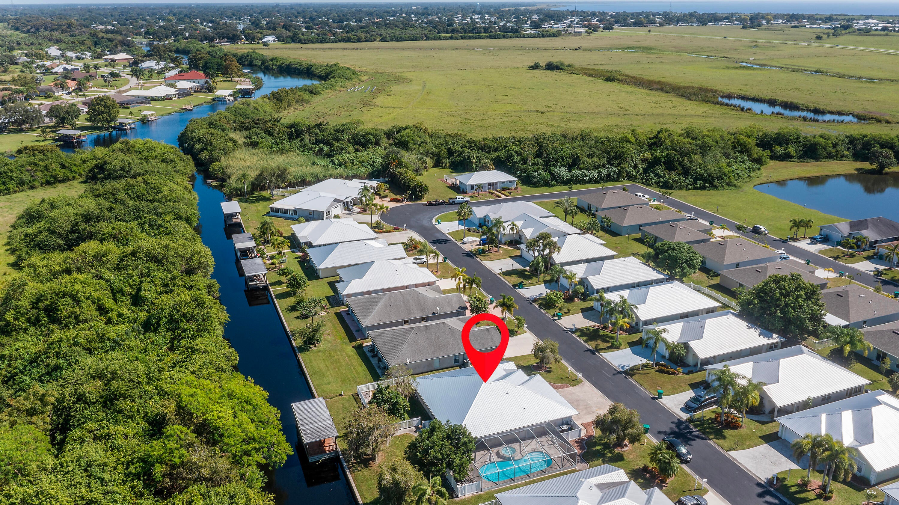 Waterfront, with Lake O access. This exceptional CBS 3-bedroom, 2.5-bath waterfront residence in Palm Creek is the only one situated on a double lot with its own private pool.This spacious 2,689 total sq. ft home offers comfort, functionality, and peace of mind. Features include a hurricane-safe room, a large air-conditioned office ideal for working from home, and an expansive covered dock overlooking the water. The air-conditioned two-car garage provides extra convenience and comfort.Recent updates include a new metal roof installed in 2025 and all-new screens for the enclosed pool cage. Hurricane shutters offer additional storm protection.Enjoy the perfect combination of waterfront living, modern updates, and thoughtful design -- a rare find in Palm Creek.
