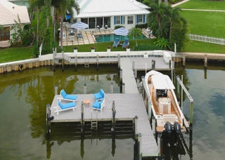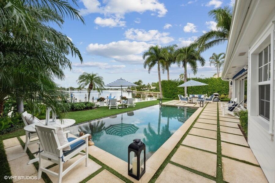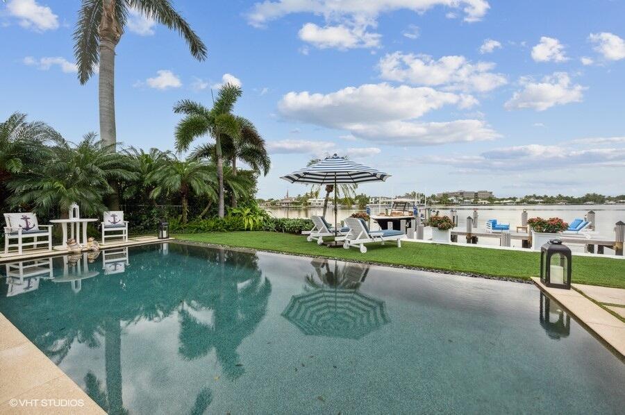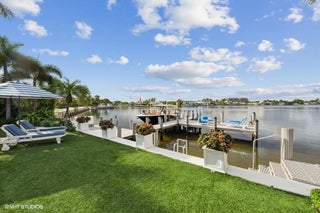 Spectacular Waterviews! Access to the Ocean. Completely renovated featuring 4 bedrooms, 4.5 baths, vaulted ceilings, wood floors, top of the line appliances, pool, electric screens and boat dock! Professionally decorated and the furnishings stay with the residence. Don't miss seeing this conveniently located home within walking distance to the golf club, spa, and beach club!