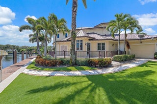 One of a Kind custom estate home on a point lot with turning basin and 210' of protected deep water dockage. If you have a Sportfish/Motor Yacht up to 90' and a large Center Console then this is the house for you! This home features marble and wood floors, coffered and volume ceilings, all en-suite bedrooms, a guest quarters with kitchenette, panoramic views from most rooms, Chef's kitchen with top of the line appliances and large Butler's pantry, an elevator, a tackle/safe room, an office with custom built-ins and wood floors that has a full bathroom and walk-in closet to be a 6th bedroom. Other amenities include a custom wet bar with Onyx tops, a 60 KW Kohler generator, Crestron system, exterior camera system, two tank-less gas water heaters with an electric backup... (See Supplement), Icynene and foam board insulation, summer kitchen, custom saltwater pool with hot tub, tumbled marble deck and a gas fire pit.