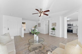 Impeccably renovated 4BR/2.5BA residence with 2-car garage in the gated community of Briar Bay, West Palm Beach. Features a 2023 roof, 2018 A/C in excellent condition, and water heater under 2 years. Modern vinyl patio doors open to elegant living spaces with remodeled baths, stylish flooring, and an open-concept layout. The designer kitchen offers stainless appliances--all new or under 2 years--custom cabinetry, and quartz counters. The backyard is an entertainer's paradise with an in-ground pool featuring a waterfall option, covered grill/fridge area, and paver landscaping. Resort-style amenities include pool, tennis, gym, and playgrounds.