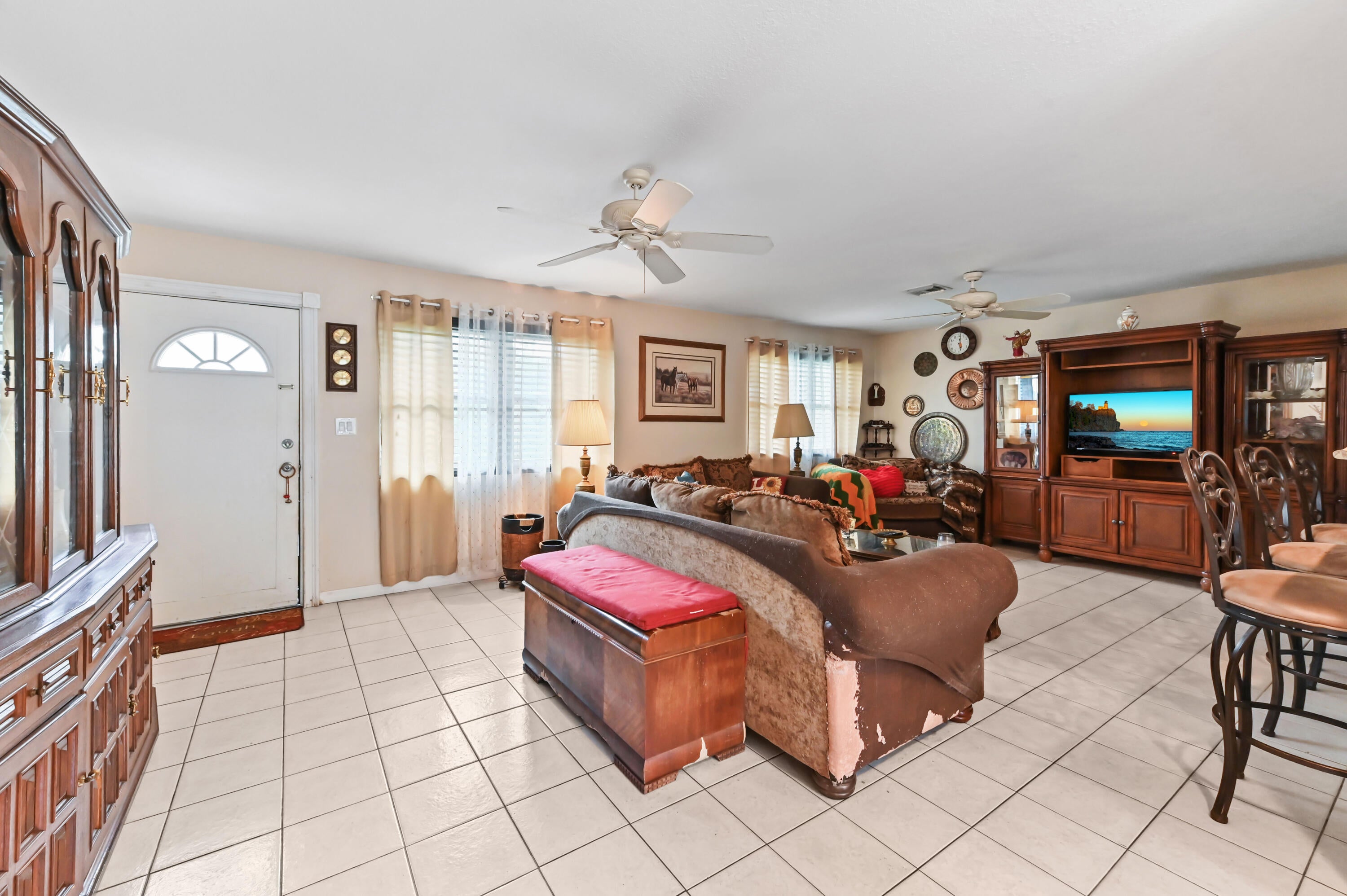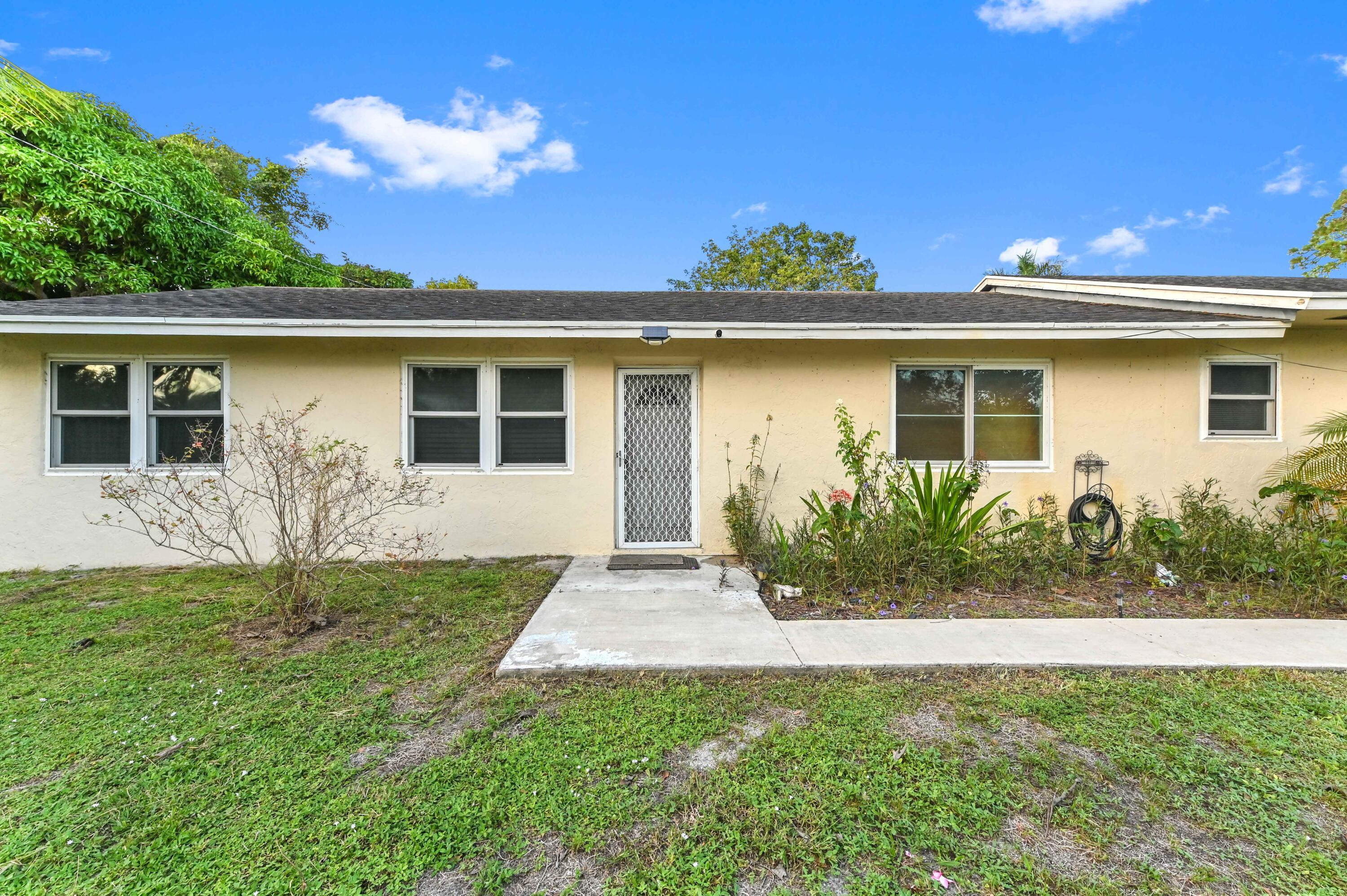 Discover your opportunity to secure a spacious, move-in-ready home on a large, private lot in a fantastic location. This charming single-family residence offers 3 bedrooms and 2 bathroom, impact windows, brand new water filtration system and the ultimate freedom of a no-HOA property, situated on a generous parcel of land. The large backyard is a true oasis, featuring a vast grassy lawn framed by trees, offering a private, tranquil retreat that is perfect for outdoor activities or future expansion.The interior offers a functional, multi-use layout with square tile flooring in the main areas and a mix of wood-look laminate and carpeting in the bedrooms. The main living space flows effortlessly to a bright, open kitchen. The primary suite is exceptionally spacious, featuring wood-look laminate flooring and ample space for both a sleeping and an office/sitting area. The primary bath has a custom wood dual-sink vanity, a modern countertop, a stylish glass-tile backsplash accent, with a unique glass-block shower partition and closet space, and a jacuzzi tub! This primary suite has a private entrance that could even be used as an in-law suite or investment opportunity! The secondary rooms are equally versatile: one is set up as a home gym with wood-look laminate, while another spacious bedroom has closet space. The bathrooms have a clean, modern aesthetic with vanities and fixtures. With its functional layout, main bath, and large, private lot, this home offers fantastic value and flexibility for the ideal South Florida lifestyle.