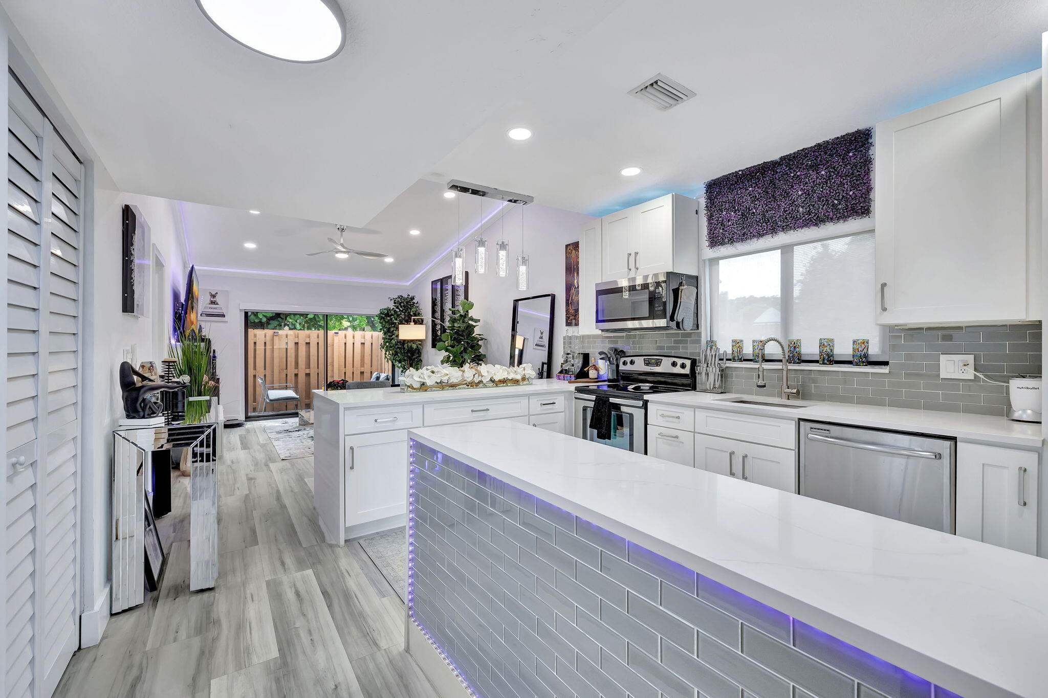 Gorgeous private Villa/Townhouse in the serene community of Centura Parc! This beautiful villa boasts contemporary upgrades all throughout, 2 spacious bedrooms and 2 bathrooms, meticulously maintained and fully upgraded! Home features Hurricane Impact windows and doors, open concept kitchen with newer stainless steel appliances, open floor plan for ideal flow and entertainment, custom LED lighting all throughout the home and bathrooms, automatic blackout blinds, private backyard space with grill, perfect for BBQs and entertainment. Spacious rooms, walk-in master closet, washer & dryer in the unit and lots of storage space. Can rent right away. HOA covers roof maintenance/replacement, building insurance, common areas and access to amenities! Book your private tour today before its gone!