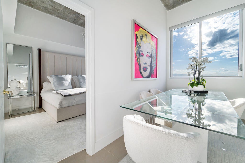 Luxurious 2/2 loft style PENTHOUSE with 12' concrete ceilings! Enjoy expansive views of the lake on your private terrace and watch amazing sunsets! Beautiful light fixtures can be seen throughout the residence. Featuring a gorgeous living and dining room area with chic stylish furnishings, a fireplace and Lutron shades w/smart home technology, Designer features include tile floor, luxury kitchen with SS appliances, granite counter tops with tile backsplash. The sleek primary bedroom en-suite has floor to ceiling blackout curtains, large walk-in closet and flat screen TV. The Edge has a 24hr lobby attendant, garage parking and fabulous amenities, including a rooftop Olympic sized pool, club house, fitness center, Zen/Yoga room and spa. Located downtown close to everything you need!***Rented 12/1/2025-3/31/2026 (not available Dec, Jan, Feb & Mar)
