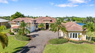 Discover this stunning Mediterranean-style residence, offering nearly 5,000 sq. ft. of luxurious living within the prestigious gated community of Vikings Lookout. This exceptional home features two spacious master suites, each with its own elegant ensuite & every bedroom has its own ensuite. Enjoy the convenience of a butler's pantry and a beautifully appointed outdoor kitchen, perfect for entertaining. Nestled on over an acre of meticulously landscaped grounds, this property boasts 167 feet on the water, showcasing wide canal and river views in a no-wake zone, just minutes from the Stuart Inlet. No fixed Bridges. Experience a lifestyle of elegance and tranquility in this remarkable home.Exquisite Mediterranean-Style Home with Luxury Features Welcome to your dream oasis! This stunning Mediterranean-style residence boasts nearly 5,000 sq. ft. of luxury living on over an acre of beautifully landscaped grounds within a prestigious gated community. Designed for both comfort and elegance, this home includes two expansive master suites, each with its own spa-like ensuite bathroom, ensuring privacy and convenience for family and guests alike. Every bedroom is designed with an ensuite, providing a perfect blend of luxury and functionality. Entertain in style with a sweeping open floor plan, featuring gorgeous marble floors and energy-efficient foam insulation. The chef's kitchen opens to the dining and living areas, making it ideal for gatherings.Step outside to your private paradise, complete with a sparkling pool and relaxing hot tub and outdoor kitchen.- perfect for unwinding after a long day. Enjoy direct access to a navigable canal, perfect for boating enthusiasts and water lovers.This property also features hurricane windows for peace of mind, a 6-car garage for all your vehicles and toys, and a low HOA that enhances the appeal of this impressive community.Discover the ultimate in luxury living with convenience at your fingertips! Your slice of paradise awaits!