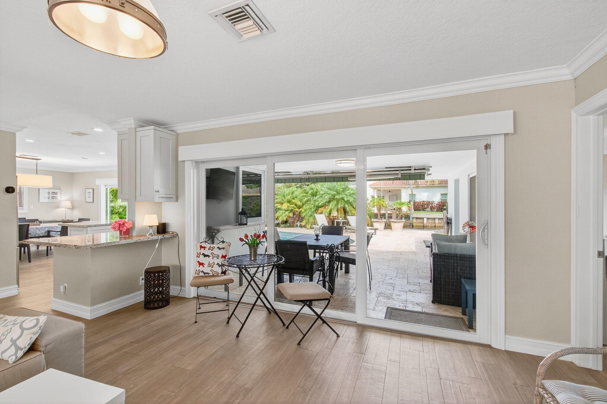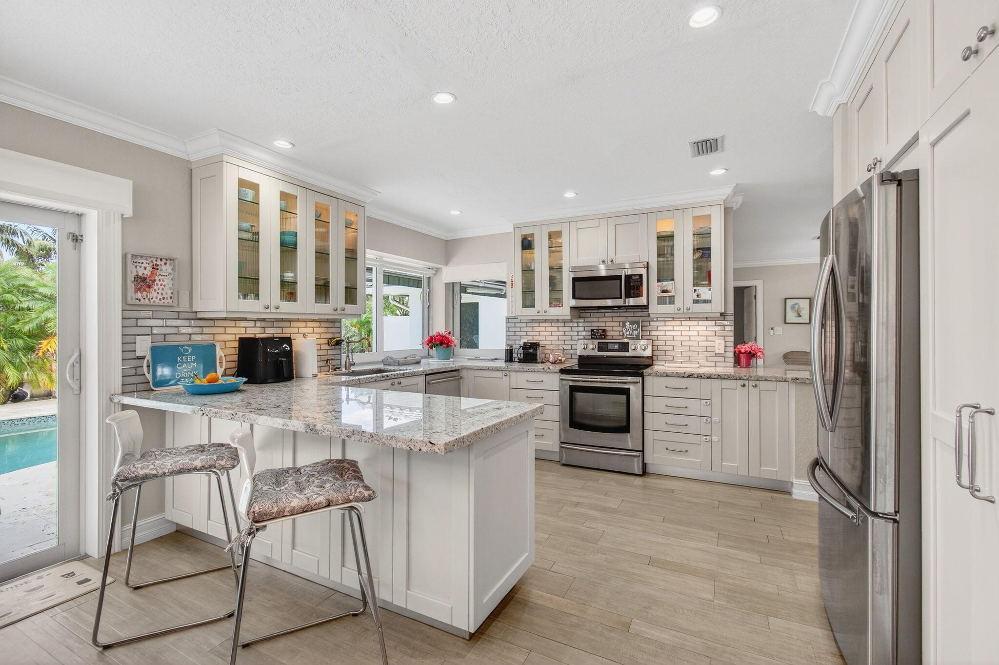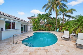 Amazing opportunity to live near the beach in this fully updated, move-in ready three bedroom, two bathroom home with a two car garage. Bring your boat large or small as the lot has approximately 75 feet of updated seawall on a deep canal (recent inspection gave the seawall a clean bill of health), a new dock with power, and no fixed bridges with easy access to the intracoastal and ocean. Featuring wood-like tile throughout and the peace of mind of impact windows and doors, the home is perfect for entertaining with a resort style heated saltwater pool, hot tub, marble paver pool deck with a covered patio, fenced yard, and pristine landscaping. Ideally located less than five miles from downtown Atlantic Avenue and near world class shopping, dining and entertainment. Priced to sell!