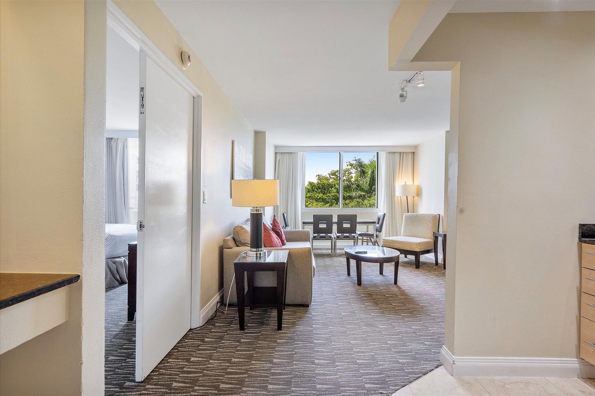 Enjoy intracoastal views in a location that's tough to beat! This fully furnished, pool & intracoastal view, 2 bed, 2 bath condo hotel unit features 3 queen beds and can be rented out daily (currently in hotel program). Located next to the Galleria Mall and minutes from the beach, enjoy on-site amenities or catch the water taxi which stops at the property. All utilities including cable and internet are included in the monthly dues.