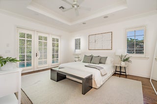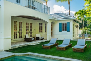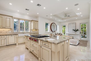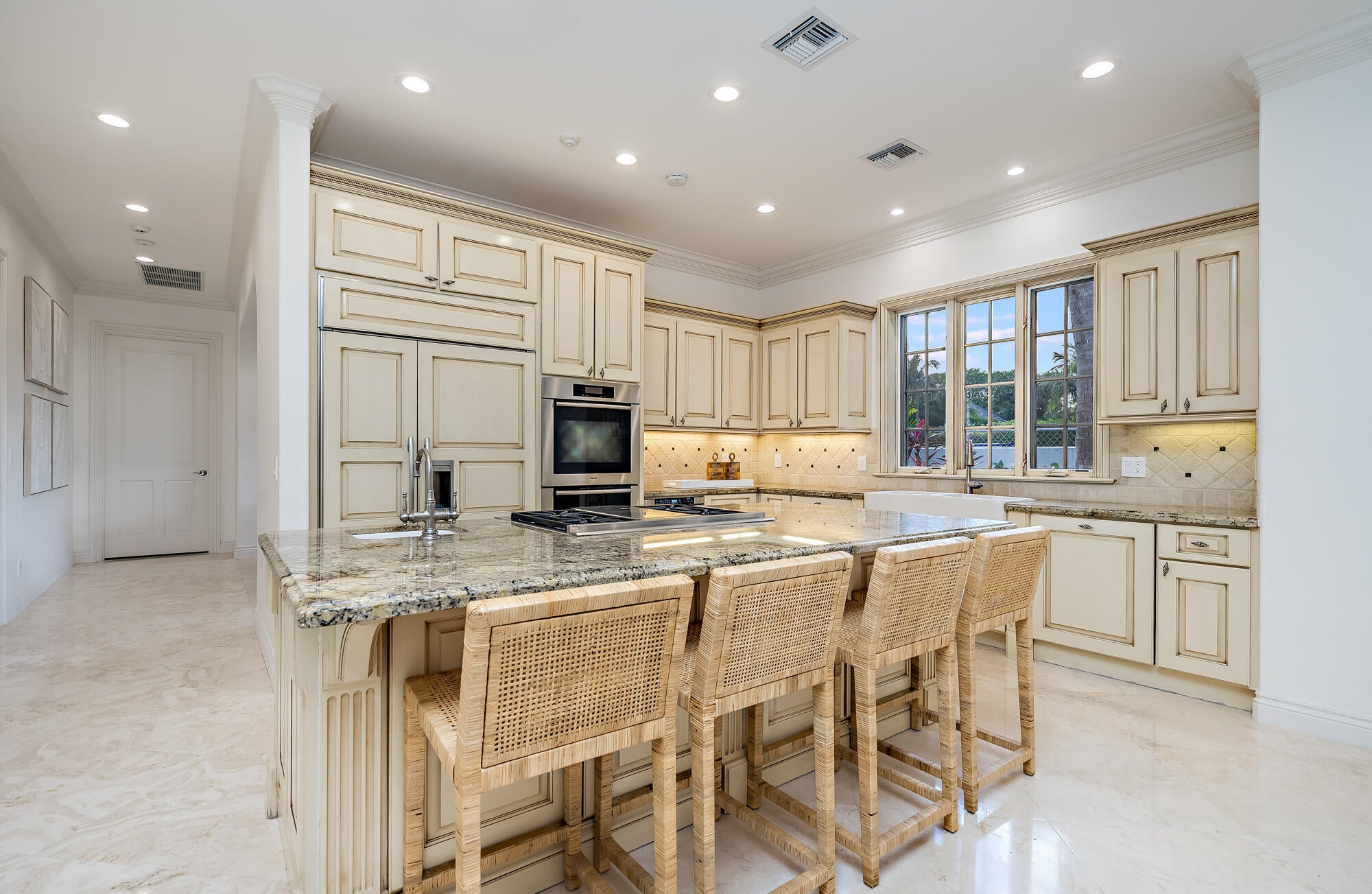 Located on the desirable North End, this residence offers 5,222+/- total square feet with 5 bedrooms, 6 and a half bathrooms, a pool, covered loggia, two-car garage, and beach access with cabana.A formal entry opens to the living room with a fireplace and French doors leading to the loggia and pool beyond. The spacious eat-in kitchen features a large center island with a gas range, two sinks, and a breakfast area that opens to the family room and pool terrace. The formal dining room sits just off the kitchen, ideal for everyday living and entertaining.A library or optional bedroom, cabana bath, and the primary suite complete the main level. The primary suite includes dual walk-in closets, dual vanities, and direct access to the pool.Upstairs, three guest bedrooms each have en suite baths and walk-in closets. Two open to a shared balcony overlooking the pool, while the third offers a private balcony.