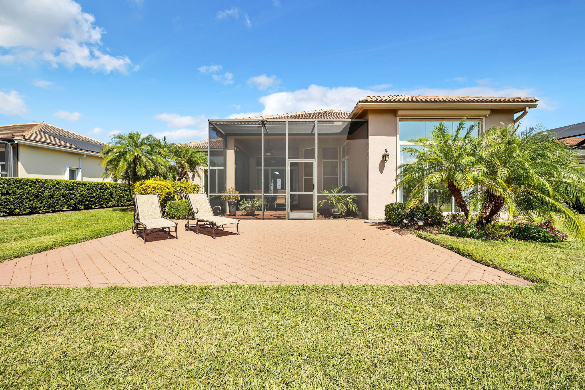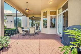 Exquisite 2 Bdrm. + Den, home features 12-foot ceilings w/crown molding, elegant wood floors, and porcelain tile. The gourmet kitchen boasts stainless-steel double oven with convection, induction glass cook-top, wine cooler. Recent updates include interior and exterior paint, electric & manual window treatments, recess lighting, chandeliers and ceiling fans, door hardware and screened-in patio. The 760 sq. ft. garage has epoxy flooring. The premium lot offers stunning golf views and ample space for a custom pool.The non-mandatory club has been newly remodeled. The back of the home offers breathtaking views of the golf course. Additionally, the house is equipped with partial accordion and electric hurricane shutters.