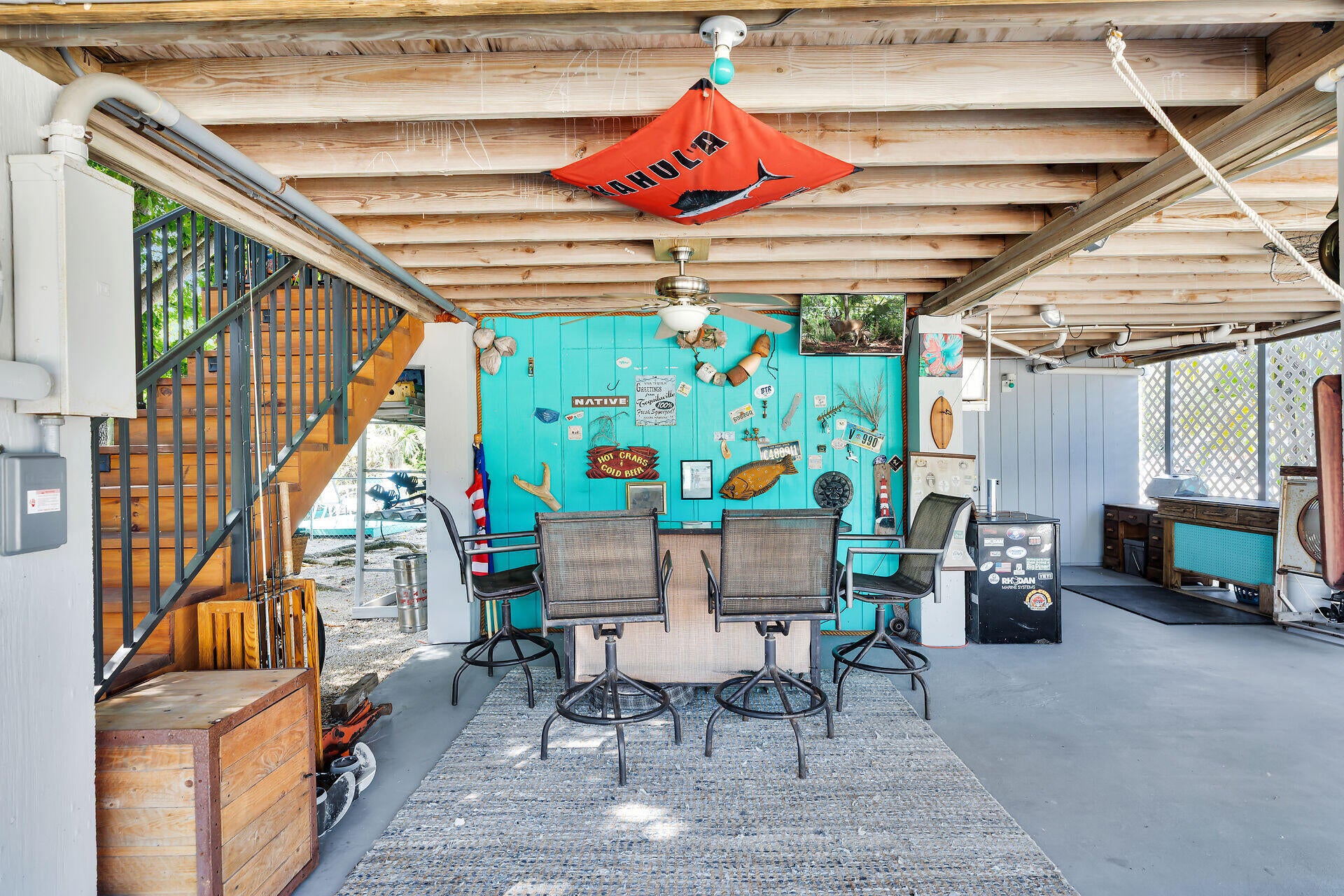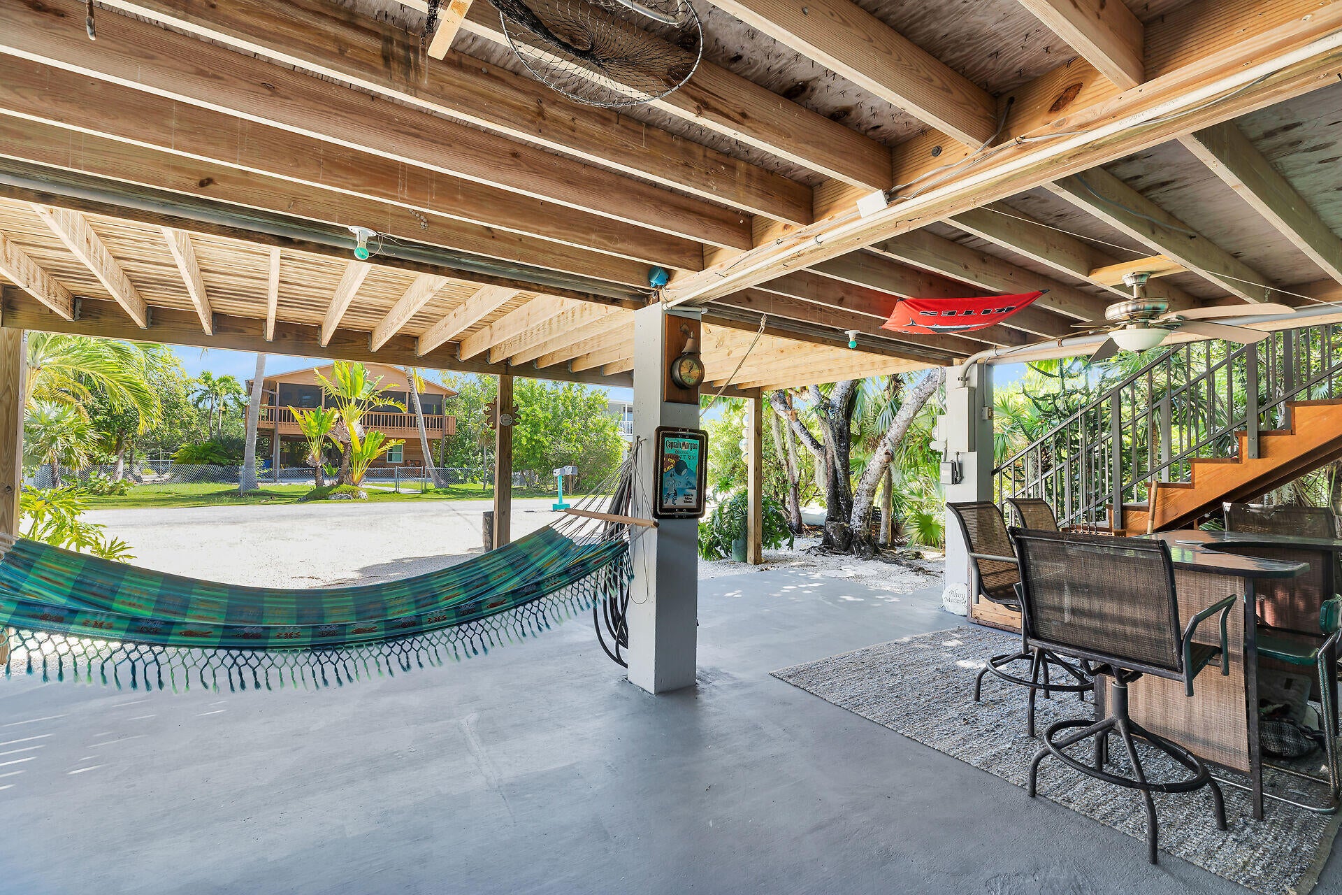 This charming 2-bedroom, 1-bath elevated home blends island charm, comfort, and outdoor living. Surrounded by lush palms and tropical trees, it feels like a true tropical hideaway. Inside, bright open spaces flow to a sunny balcony--perfect for morning coffee, birdwatching, or soaking up the Keys sunshine. Downstairs, embrace ''Keys Time'' at your own bar, relaxing in a hammock or entertaining friends after a day on the water. The 7,640 sq. ft. lot offers shade, fruit trees, and room for your outdoor oasis. A 9x13 utility building provides extra storage for gear. With ample parking for your boat, RV, or trailer, and close to marinas, fishing, and diving, this Big Pine Key gem is ideal for full-time living, vacationing, or investing.