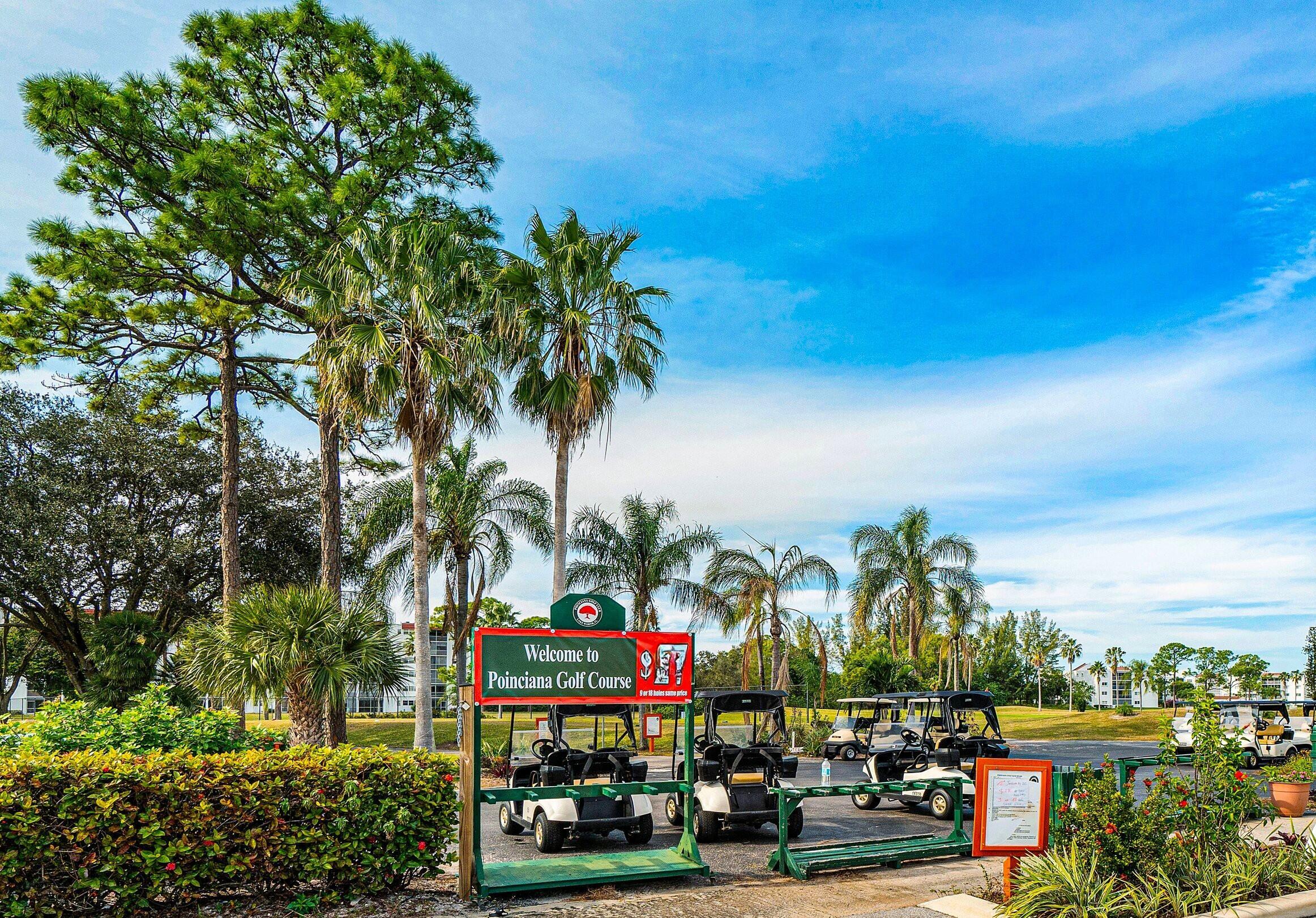 This unit is a must see!! Beautiful, unique corner unit in the town home (villa) section of Poinciana * This home is like no other!! The gorgeous kitchen has been completely updated & opened up: NO WALL for unobstructed views! * This unit has also seamlessly converted the rear porch to living area with a flush, level floor - giving it better flow, over 100 sq ft of extra living area & no awkward step downs like other identical units! * Elegant, huge marble tile floors * Both bathrooms are attractively updated * All impact windows & doors for safety & peace of mind! * 1-car garage * Front screened entry porch & foyer * Enjoy grilling on the back patio with huge, private backyard * 2 pets allowed * HOA includes building insurance, exterior maintenance, roof, lawn care, cable, internet ** Close to lots of guest parking * Newer washer & dryer * Building has newer roof * The townhome residents have their own community pool to enjoy, in addition to ALL the amazing amenities in Poinciana: Clubhouse, on-site Restaurant, Golf, Tennis, Pickleball, Fitness Room, Main swimming pool, organized activities and events - just an amazing place to live for the 55+ crowd!