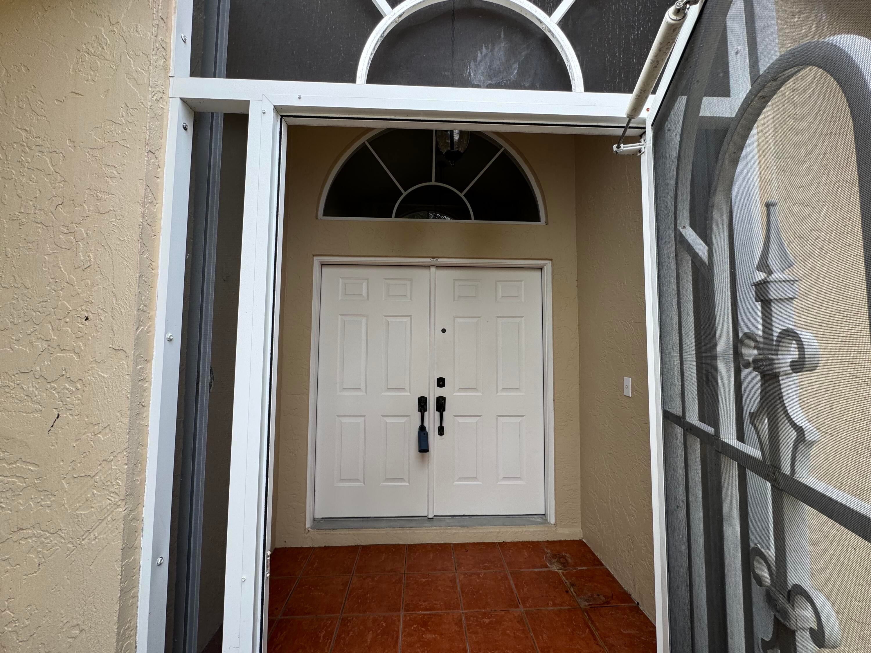 Move right into this 3/2/2 Freshly painted home in desirable River Bridge. Quick closing available! Home boasts plenty of natural light, tile on the diagonal, split floor plan, formal dining/living area, updated kitchen open to family room & indoor laundry w/ pocket door. Kitchen has w/granite counters, LG SS appliances, pantry & bar. Interior also offers plantation shutters, sliders from living & primary bedroom to screened patio. Screened front porch brings you to the double door entry. Exterior is pre-cast solid concrete construction w/accordion shutters, gutters, electric fountain & 50 amp 220 plug for EV. Southpointe offers a satellite pool in addition to the River Bridge amenities(see supplement). Close to multiple dining options, groceries & Wellington mall. USE FOREST HILL ENTRYRiver Bridge offers 24/7 guarded security, on-site management, fitness center, lawn care, cable, and internet, tennis, pickleball, basketball, shuffleboard, billiards, playground, card rooms, a theater, a game room, BBQ's, pool and spas for all ages to enjoy.
