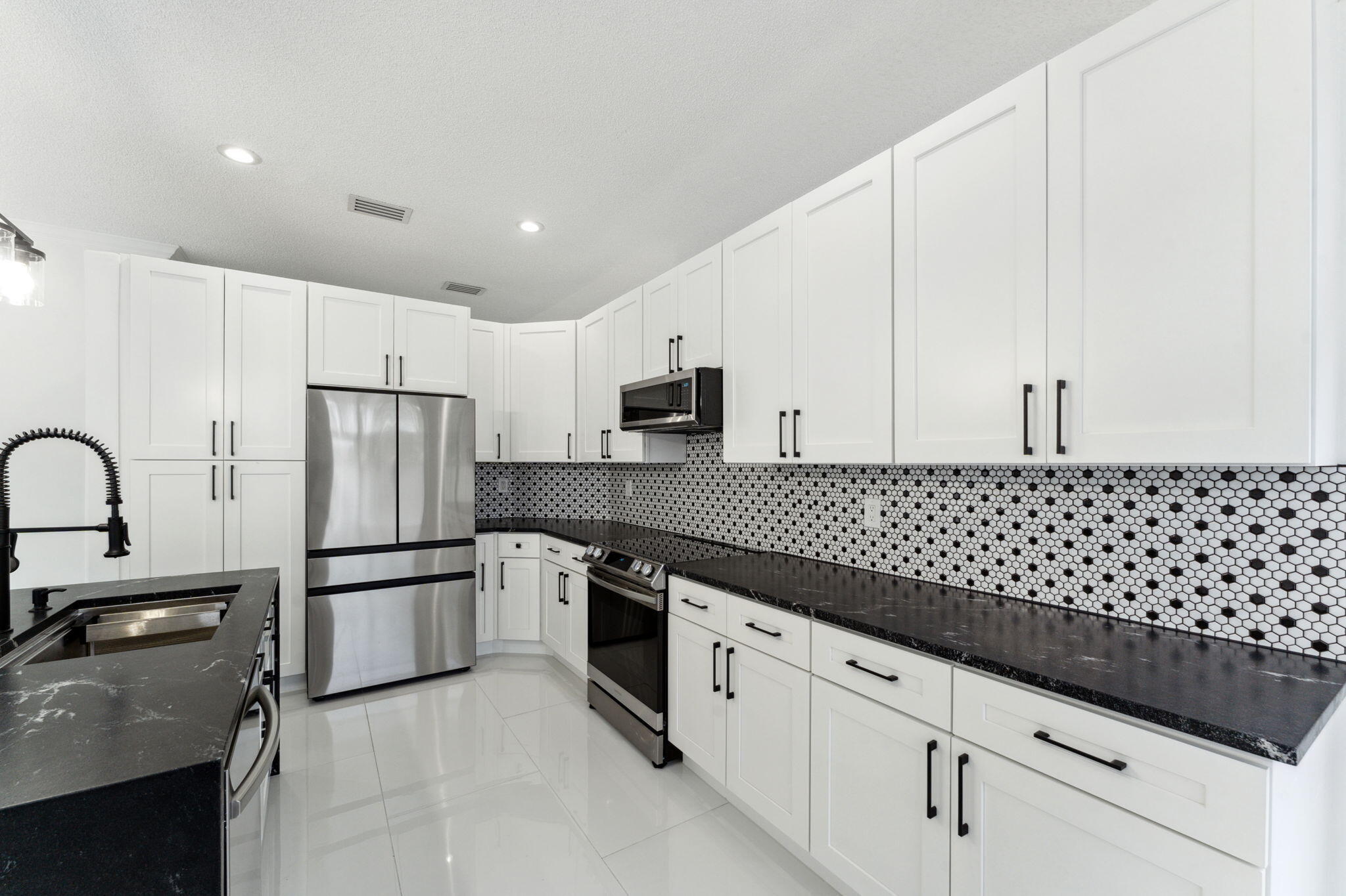 Discover this beautifully remodeled 4 bedrooms, 2 bath, 2 car garage, pool home where no detail has been spared. Featuring a fully renovated kitchen, new appliances, new floors, impact hurricane windows, updated bathrooms, and brand new roof this home offers modern elegance and safety. The spacious fully fenced in backyard boasts a newly refinished pool and artificial grass, perfect for leisure and entertaining. Located in the highly desirable gated community of Winston Trails, with loads of amenities you will also benefit from A-rated schools and close proximity to shopping and dining. Truly, there is no better place to call home. Lawn care and pool service included in the rent.