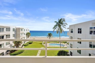 Oceanfront Luxury at Carlton House, Highland Beach. Nestled on the prized sands of Highland Beach, Carlton House offers exclusive oceanfront living in a boutique building of only 32 residences. This fabulous 2-bedroom, 2-bathroom condo on the fourth floor is a must-see for beach lovers, showcasing breathtaking views of both the Atlantic Ocean and the Intracoastal Waterway. Enjoy sweeping water views from the living room, kitchen, dining area, and primary bedroom. The spacious primary suite features a large walk-in closet, while the home is enhanced with impact windows and sliding glass doors, plantation shutters, and a utility room with an in-unit washer and dryer. Step out onto the large covered balcony to relax and take in the ocean breeze. Carlton House has been recently updated including two new elevators and is ideally located just minutes from vibrant downtown Delray Beach, known for its fine dining, shopping, and entertainment. Buyer agrees to sign the FIRPTA affidavit at closing.
