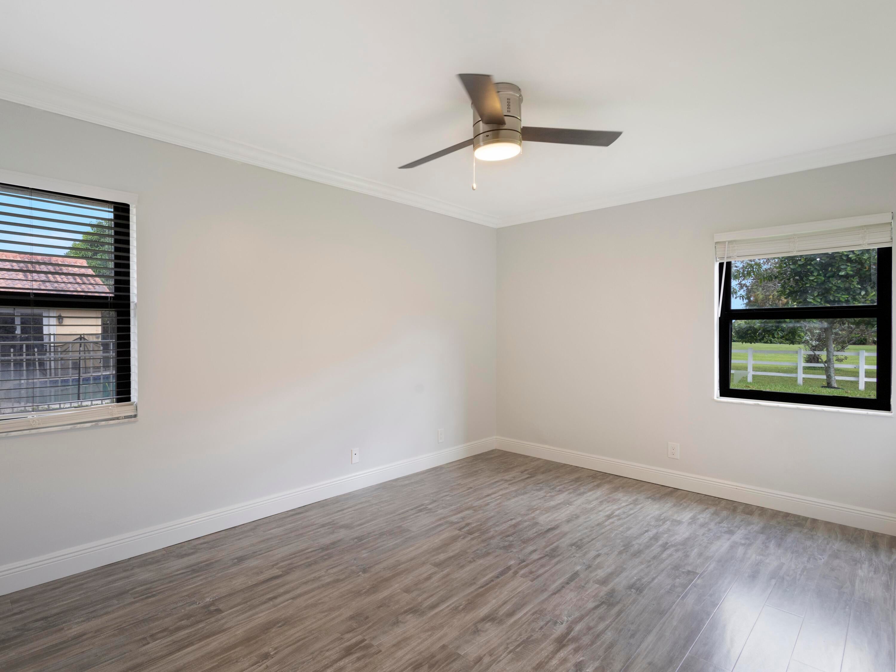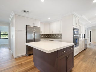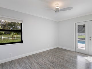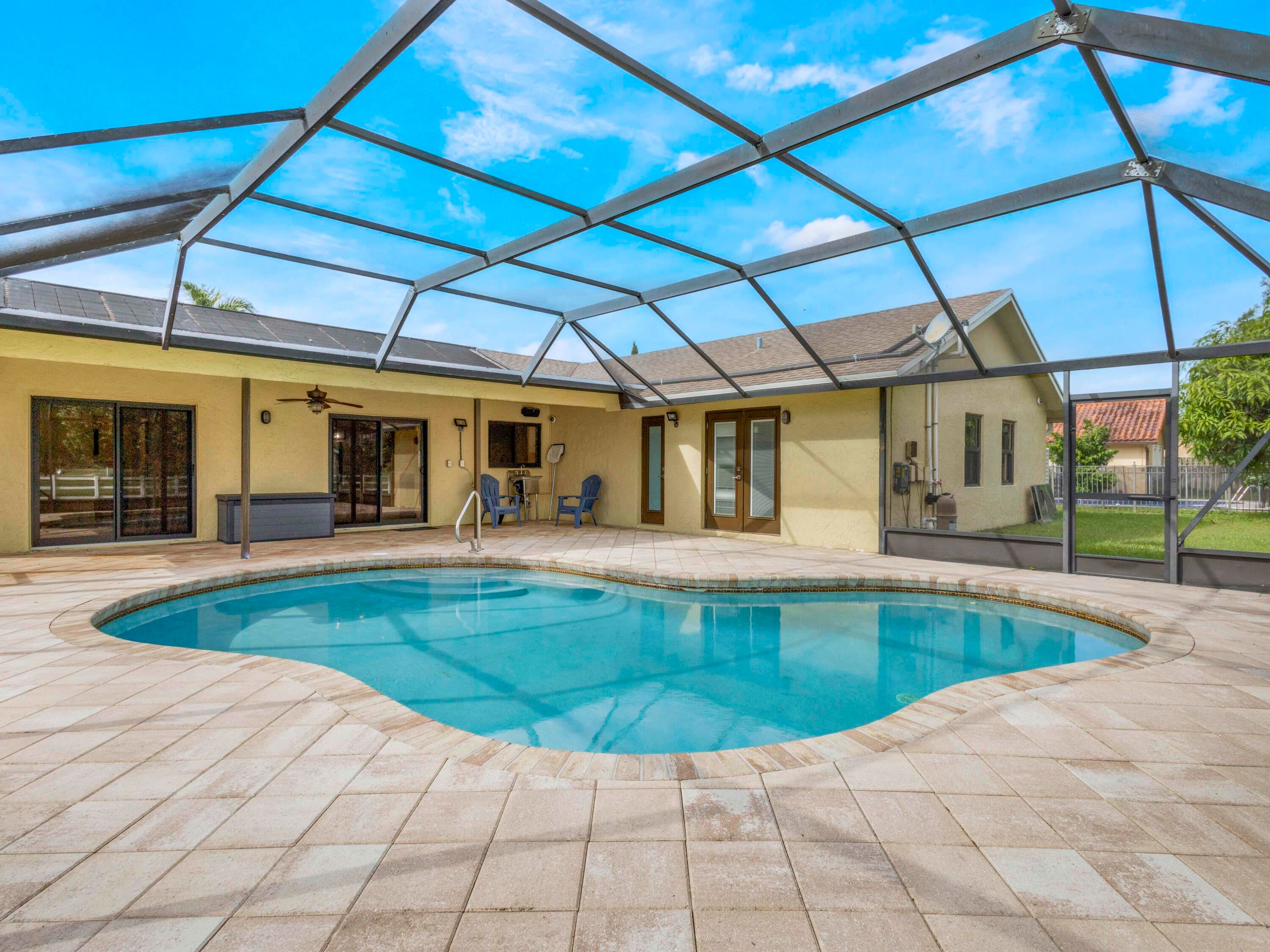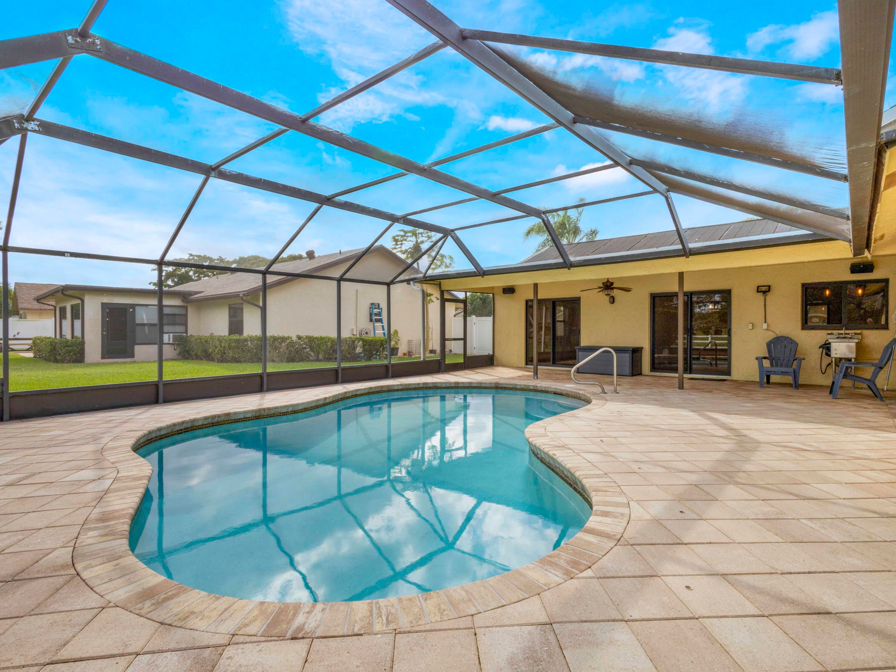 Experience the best of South Florida living in this beautifully upgraded 4-bedroom, 2-bath home featuring a cabana bath, a screened-in pool, and a spacious fenced backyard overlooking the golf course. Set on a 9,614 sq. ft. lot with mango, banana, and jackfruit trees, this property blends elegance, comfort, and functionality.Inside, discover an open and bright floor plan enhanced by modern finishes, crown moldings, and beautiful fans in every room. The expansive living and family areas create an inviting space for entertaining, while the bedroom with double doors offers versatility for guests or a home office. No carpet throughout, just clean, contemporary flooring for easy maintenance.The chef's kitchen is truly the centerpiece of the homedesigned for both style and function. It features stainless steel appliances, a double oven, two oversized kitchen islands, and custom cabinetry with pull-outs, providing exceptional storage and workspace. The quartz countertops and designer backsplash add a sophisticated touch, while the open layout connects seamlessly to the living and dining areas. The primary suite includes a large walk-in closet and private bath, while the laundry room features a full-size washer, dryer, and sink. Additional highlights include impact windows and doors, a built-in speaker system (ready to connect your device), electric car charger, and designer light fixtures that complete the home's modern aesthetic. Enjoy access to a resort-style community with two parks, a new pool, tennis and basketball courts, and a tot lot. This pet-friendly, all-ages neighborhood is within walking distance to houses of worship and zoned for A-rated schools: Whispering Pines Elementary, Eagles Landing Middle, and Olympic Heights High. This home is move-in readybright, stylish, and perfectly designed for the Florida lifestyle.