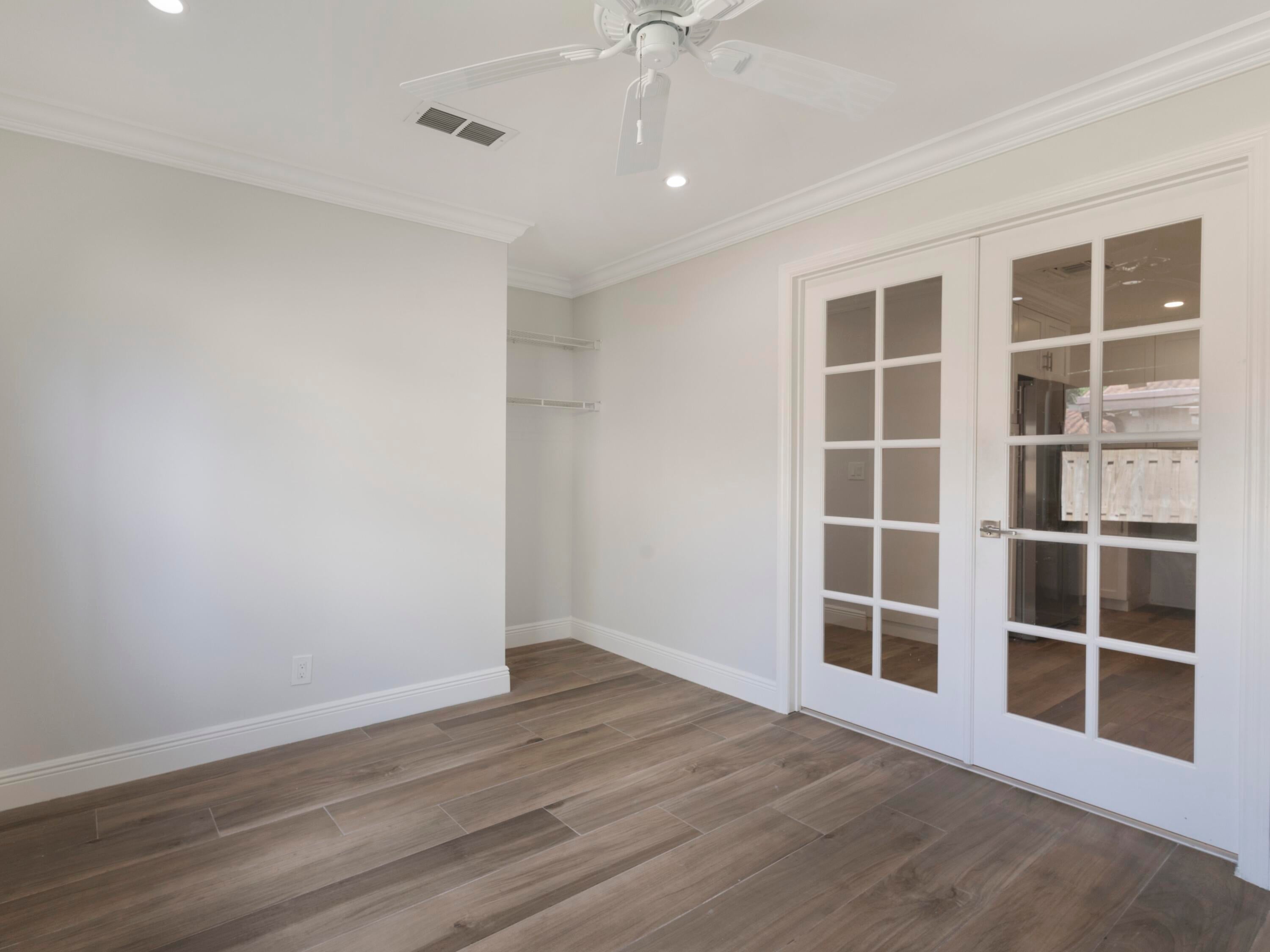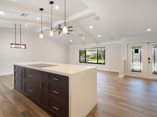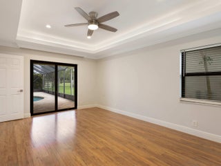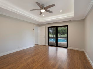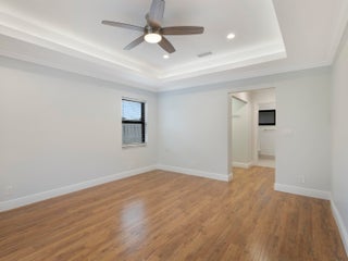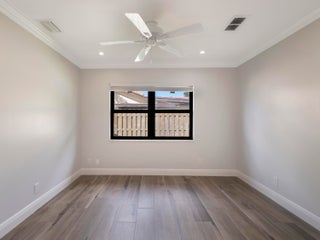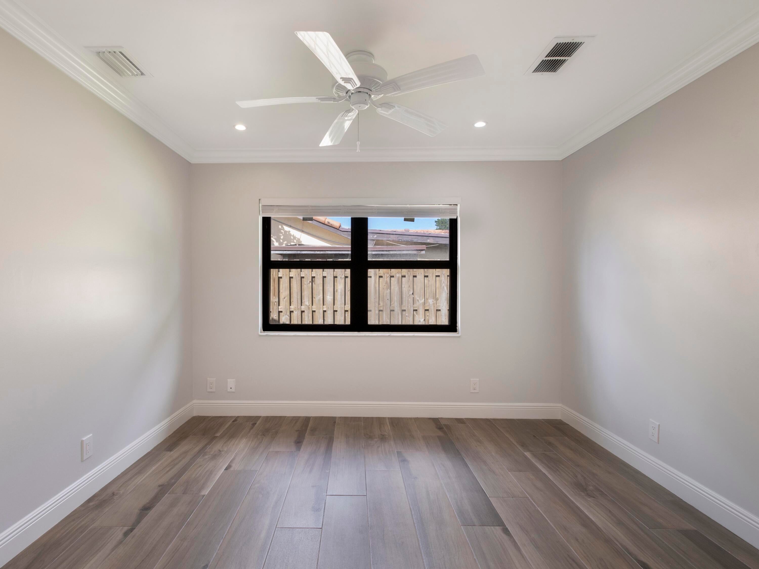 Experience the best of South Florida living in this beautifully upgraded 4-bedroom, 2-bath home featuring a cabana bath, a screened-in pool, and a spacious fenced backyard overlooking the golf course. Set on a 9,614 sq. ft. lot with mango, banana, and jackfruit trees, this property blends elegance, comfort, and functionality.Inside, discover an open and bright floor plan enhanced by modern finishes, crown moldings, and beautiful fans in every room. The expansive living and family areas create an inviting space for entertaining, while the bedroom with double doors offers versatility for guests or a home office. No carpet throughout, just clean, contemporary flooring for easy maintenance.The chef's kitchen is truly the centerpiece of the homedesigned for both style and function. It features stainless steel appliances, a double oven, two oversized kitchen islands, and custom cabinetry with pull-outs, providing exceptional storage and workspace. The quartz countertops and designer backsplash add a sophisticated touch, while the open layout connects seamlessly to the living and dining areas. The primary suite includes a large walk-in closet and private bath, while the laundry room features a full-size washer, dryer, and sink. Additional highlights include impact windows and doors, a built-in speaker system (ready to connect your device), electric car charger, and designer light fixtures that complete the home's modern aesthetic. Enjoy access to a resort-style community with two parks, a new pool, tennis and basketball courts, and a tot lot. This pet-friendly, all-ages neighborhood is within walking distance to houses of worship and zoned for A-rated schools: Whispering Pines Elementary, Eagles Landing Middle, and Olympic Heights High. This home is move-in readybright, stylish, and perfectly designed for the Florida lifestyle.