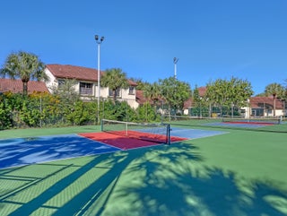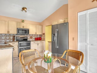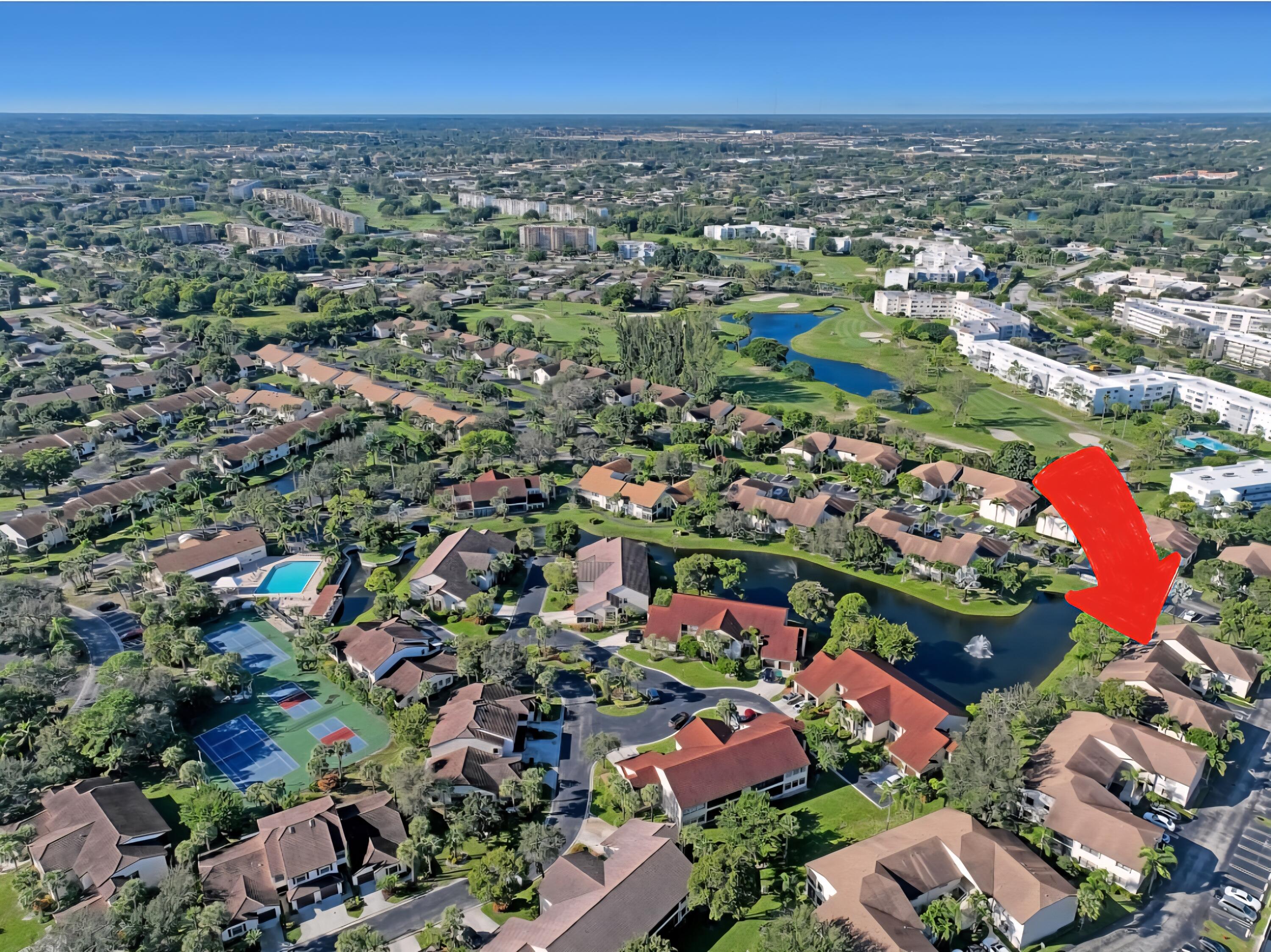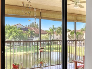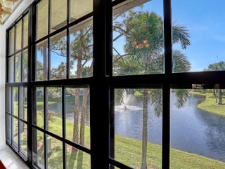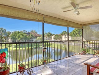 Welcome to your corner unit with stunning lake views from your covered & screened patio, living room, dining room, kitchen & primary bedroom. This 3 bedroom, 2 bath condo is waiting for you (3rd bdrm currently an office, just needs a closet). Open floorplan w/ tile & laminate wood floors, a/c 2022, appliances 2021, so many touches throughout from the Pfizer faucets to the chair rail decor. Full size washer & dryer inside your condo. Plus this community has it all... pool, fitness center, pickleball, tennis, shuffleboard, clubhouse w/ kitchen, billiards and more! Location, Location, Location... centrally in PB County, close to restaurants, shopping, medical and 15 mins to WPB Int'l Airport and beaches. SMALL PETS OKAY. You do NOT want to miss this one!